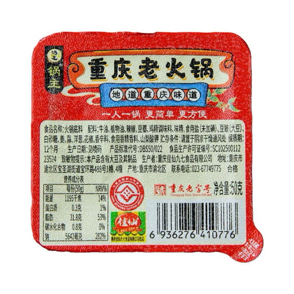 ซุปหม่าล่า หม้อไฟจีน50g ฉงชิ่งแท้ หม่าล่าเผ็ดชา ซุปเข้มข้น แพ็คเกจเล็ก50g