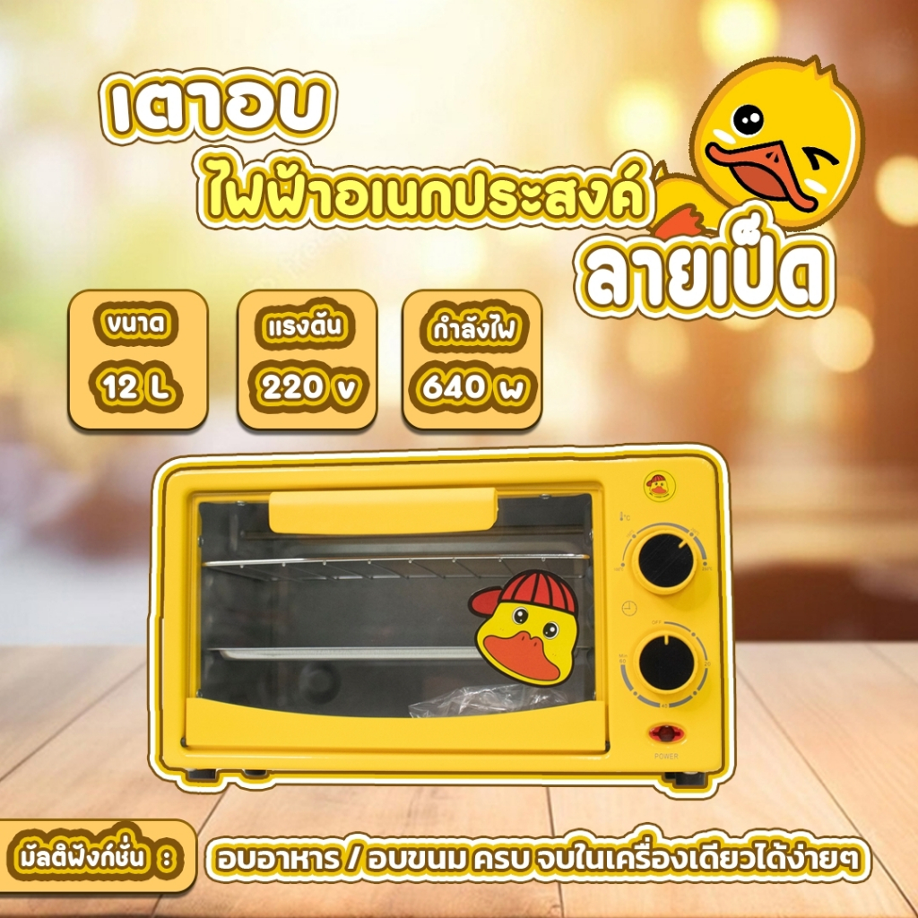 เตาอบลายเป็ด อบขนม อบเบเกอรี่ แบบตั้งโต๊ะ ไฟฟ้า ความจุ 12 ลิตร