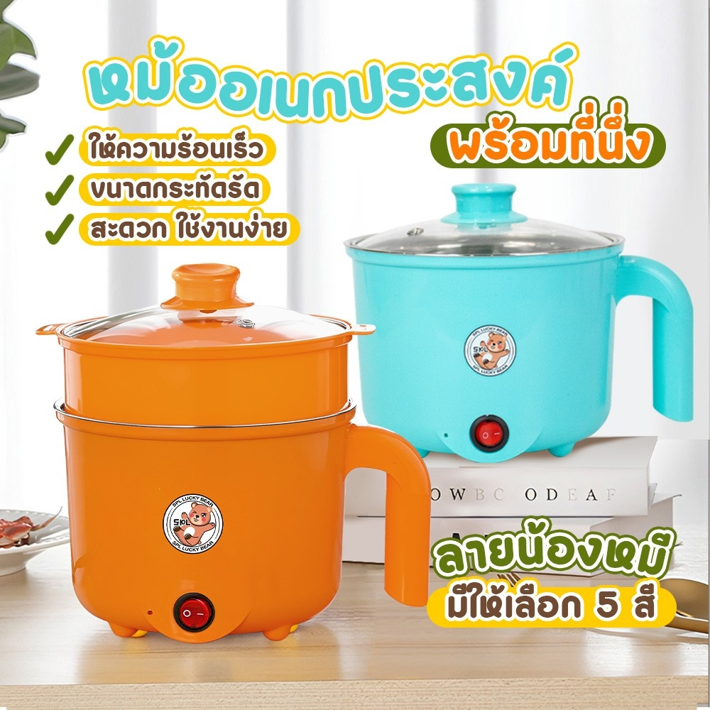 ⚡️พร้อมส่ง⚡หม้อนึ่งชาบูลายหมี หม้อนึ่ง หม้อทำอาหาร หม้อไฟฟ้า หม้อชาบู หม้ออเนกประสงค์ ลายหมี หม้อนึ่ง ชาบู นึ่ง ต้ม