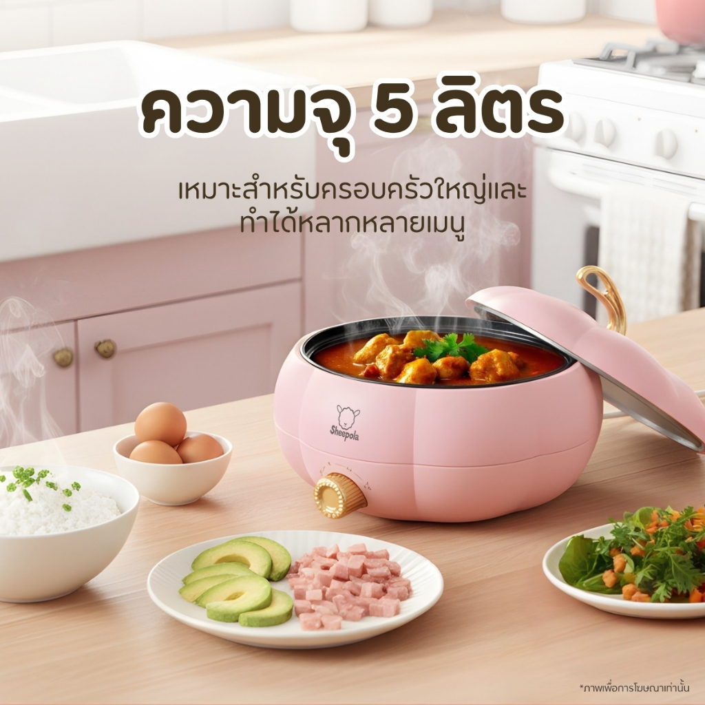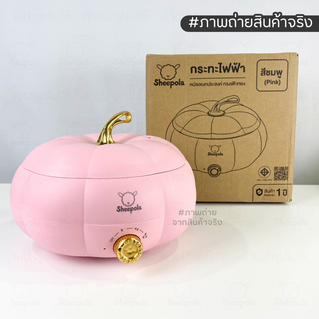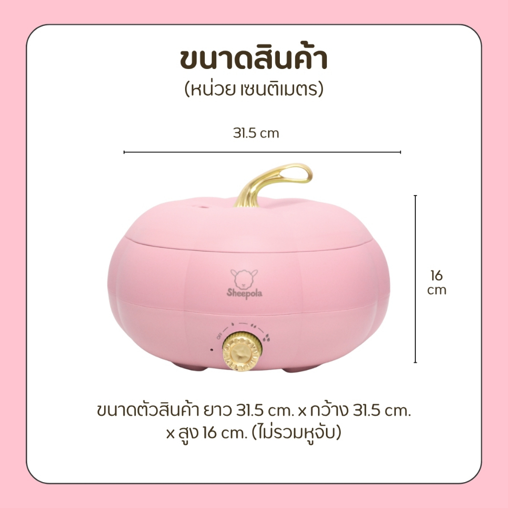 กระทะฟักทองสีชมพู กระทะไฟฟ้า กระทะฟักทอง ความจุ 5 ลิตร ปรับความร้อน 3 ระดับ ด้ามจับกันความร้อน มีช่องระบายอากาศ