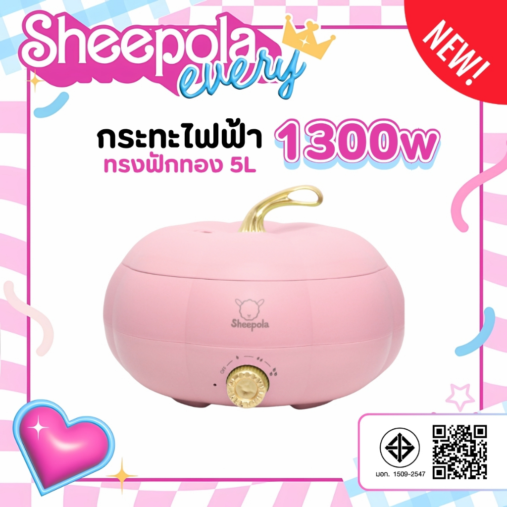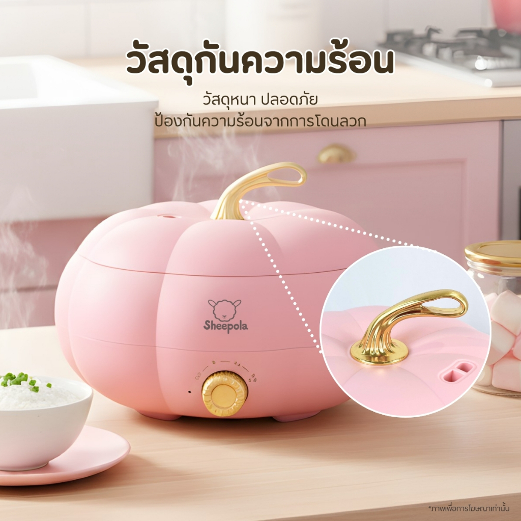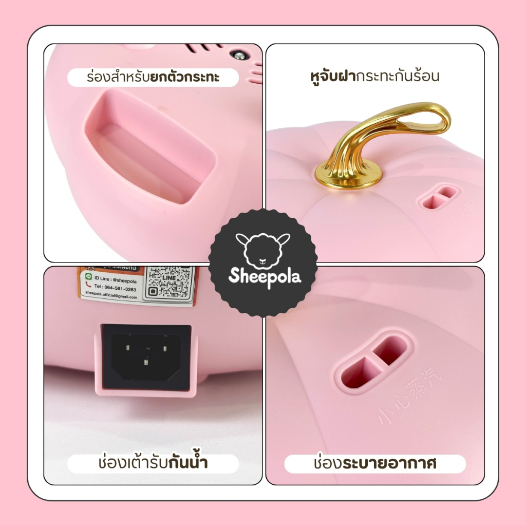 กระทะฟักทองสีชมพู กระทะไฟฟ้า กระทะฟักทอง ความจุ 5 ลิตร ปรับความร้อน 3 ระดับ ด้ามจับกันความร้อน มีช่องระบายอากาศ