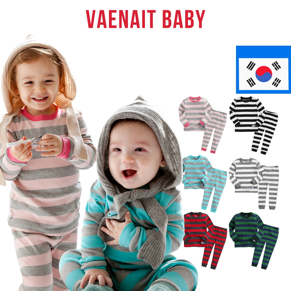 [KOREA Vaenait BABY] ชุดนอน ลายทาง หลากสี 12 เมตร -12 ปี สําหรับเด็กผู้ชาย และเด็กผู้หญิง 2 ชิ้น Set1