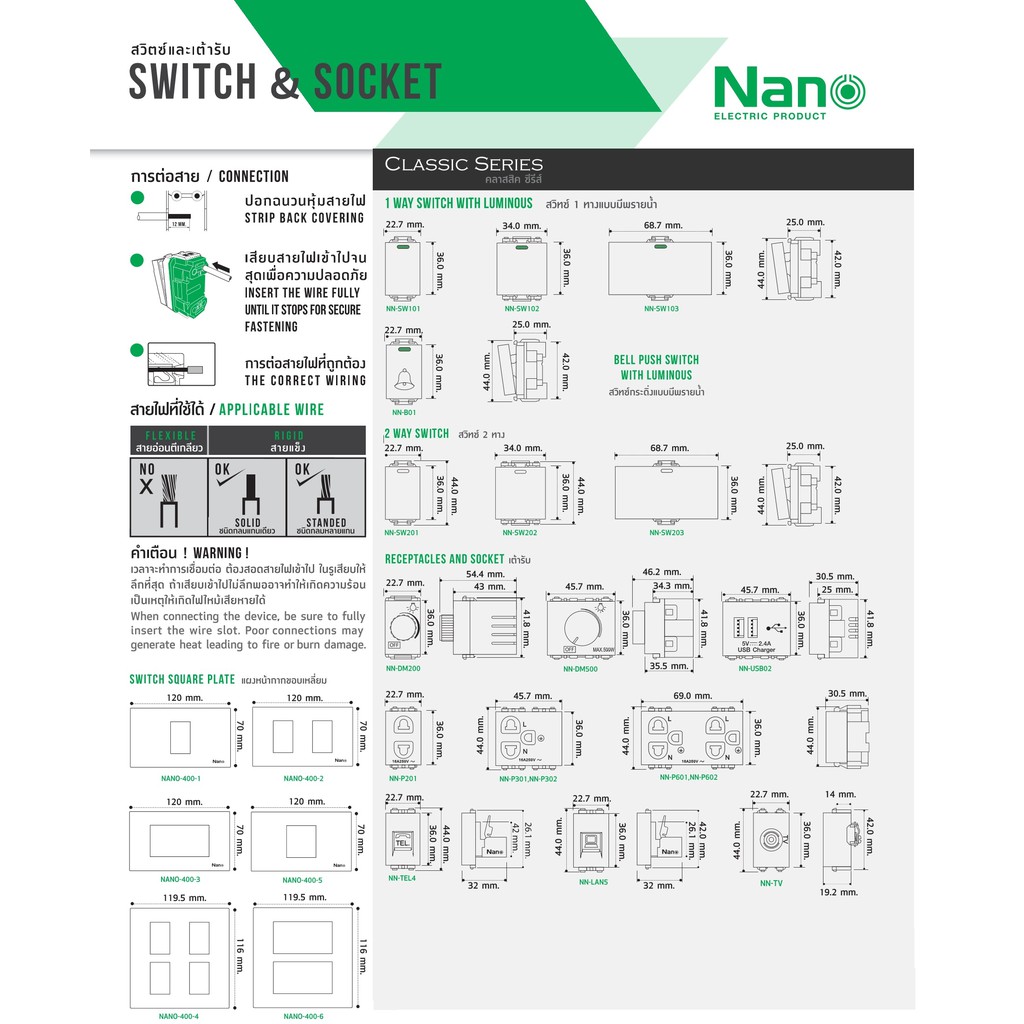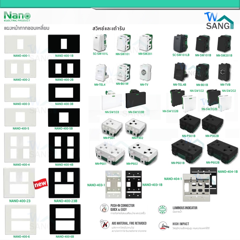 สวิทซ์ ปลั๊ก หน้ากาก เต้ารับ tv lan โทรศัพท์ NANO สีขาว สีดำ รุ่นใหม่ สินค้าคุณภาพ @wsang
