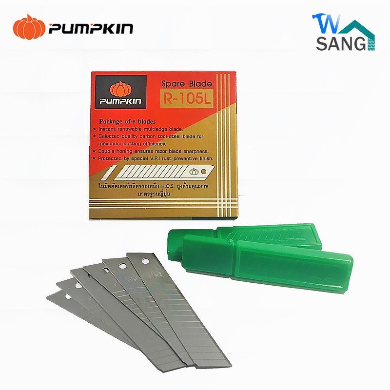 ใบมีดคัตเตอร์ PUMPKIN R-105L เกรดA ใบใหญ่ 1หลอด=6ใบ @wsang