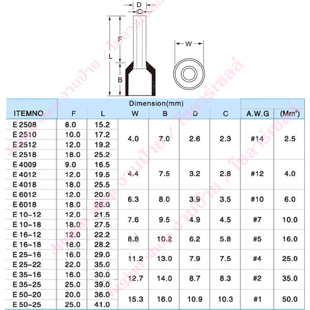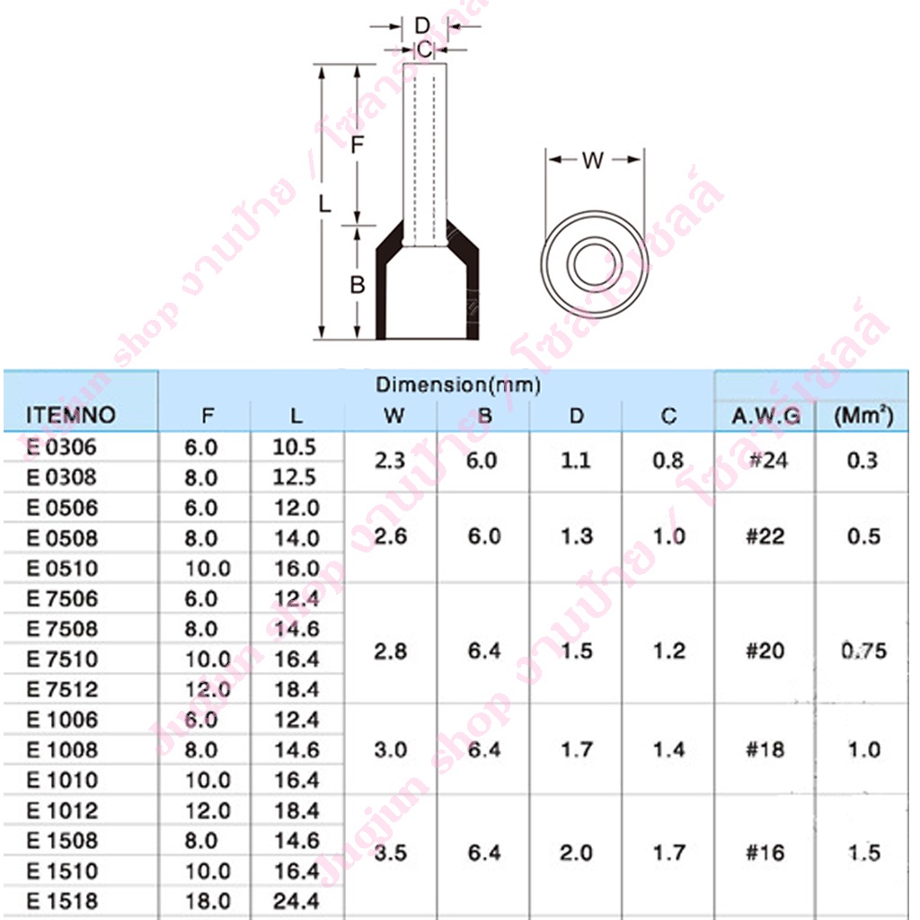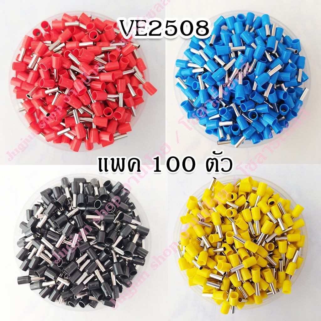 หางปลาเข็ม คอร์ดเอ็น ทองแดง/ทองเหลือง (Cord End terminal) EV2508 ขนาด 2.5 sq.mm. (แพค 100 ตัว)