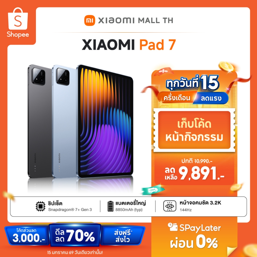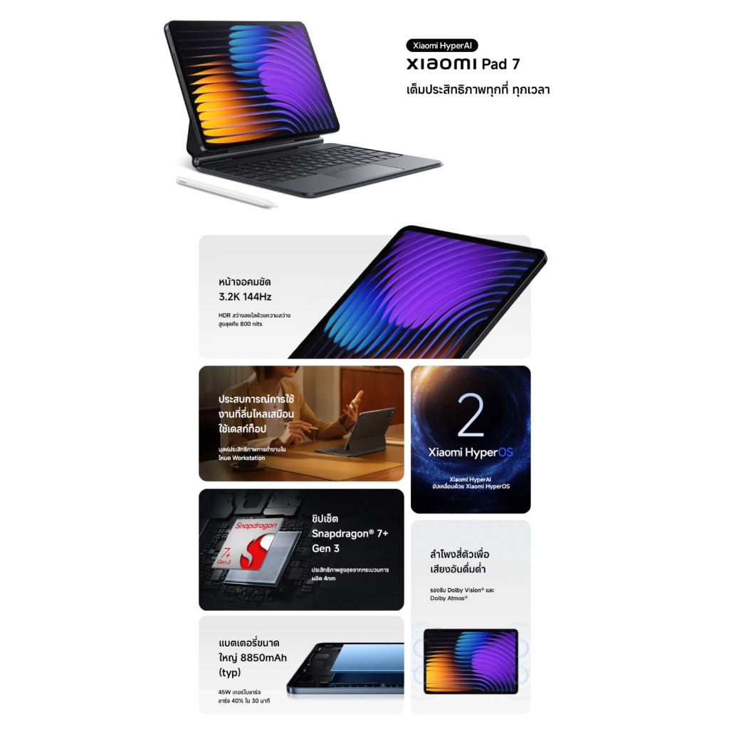 【ใหม่ล่าสุด】Xiaomi Pad 7 แท็บเล็ต หน้าจอ 11.2นิ้ว 144Hz ชิป Snapdragon 7+Gen 3 8850mAh Xiaomi HyperOS 2