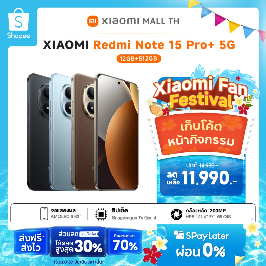 XIAOMI Redmi Note 15 Pro+ 14 Pro+ 5G 12G+512G กล้อง AI 200MP ความทนทานรอบด้าน 120W ไฮเปอร์ชาร์จ พร้อมแบตเตอรี่