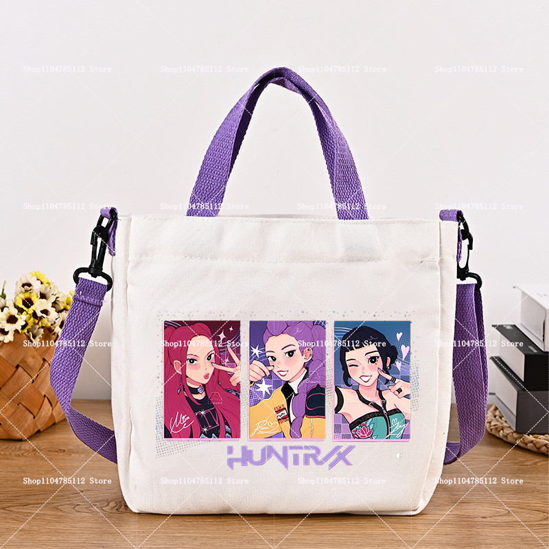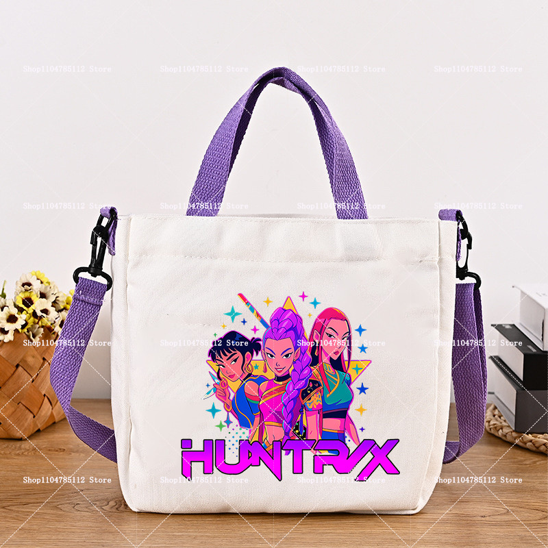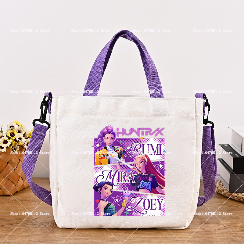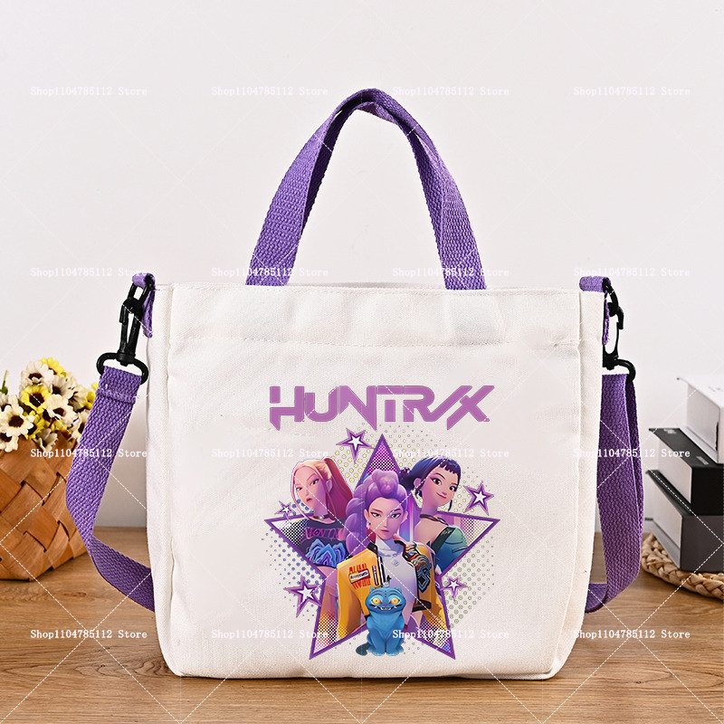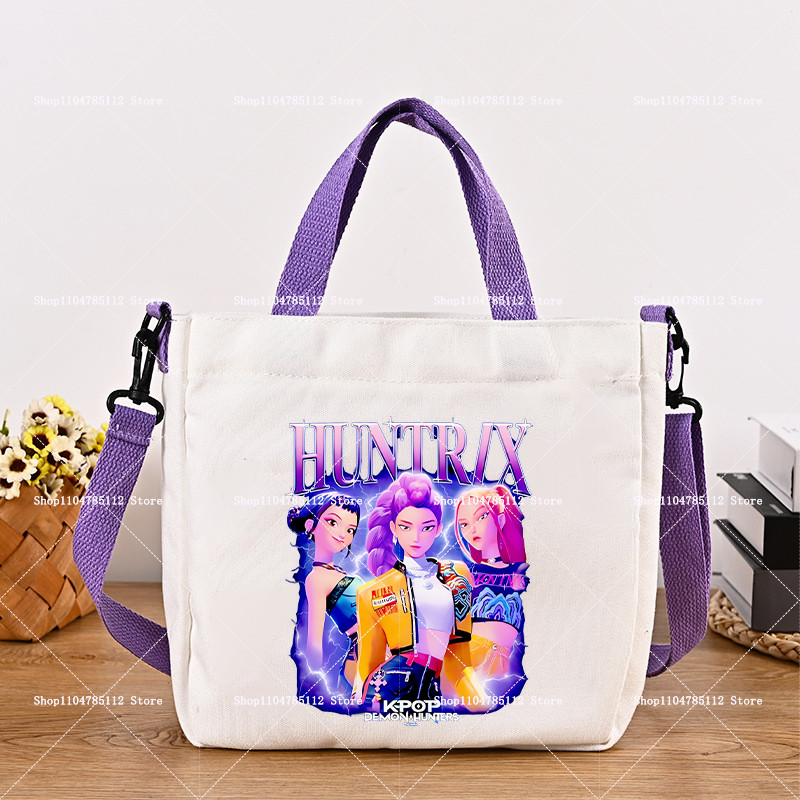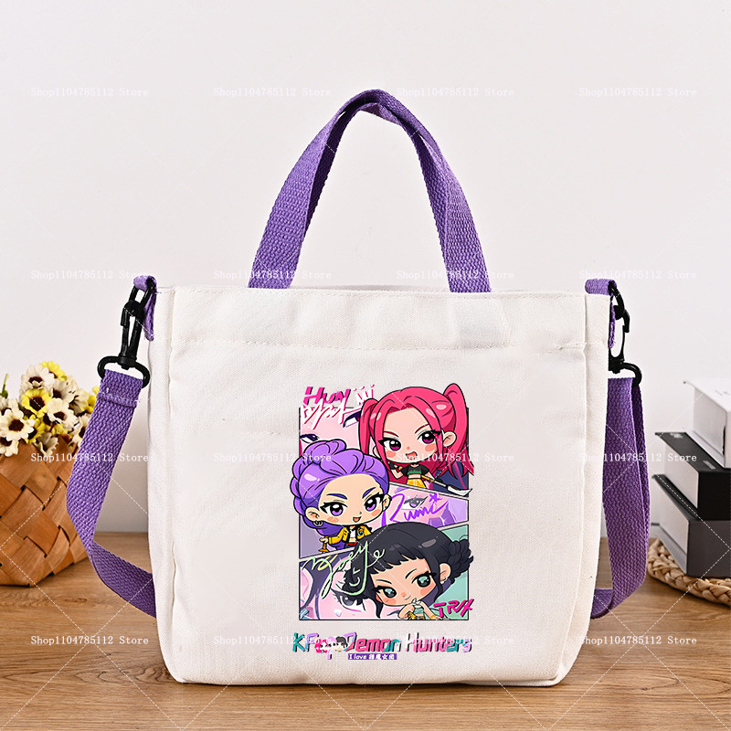 KPop Demon Hunters กระเป๋าสะพายและถือสีม่วง สไตล์แฟชั่นยอดนิยม สำหรับช้อปปิ้งทำจากผ้าใบ