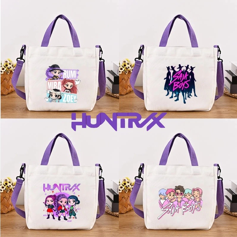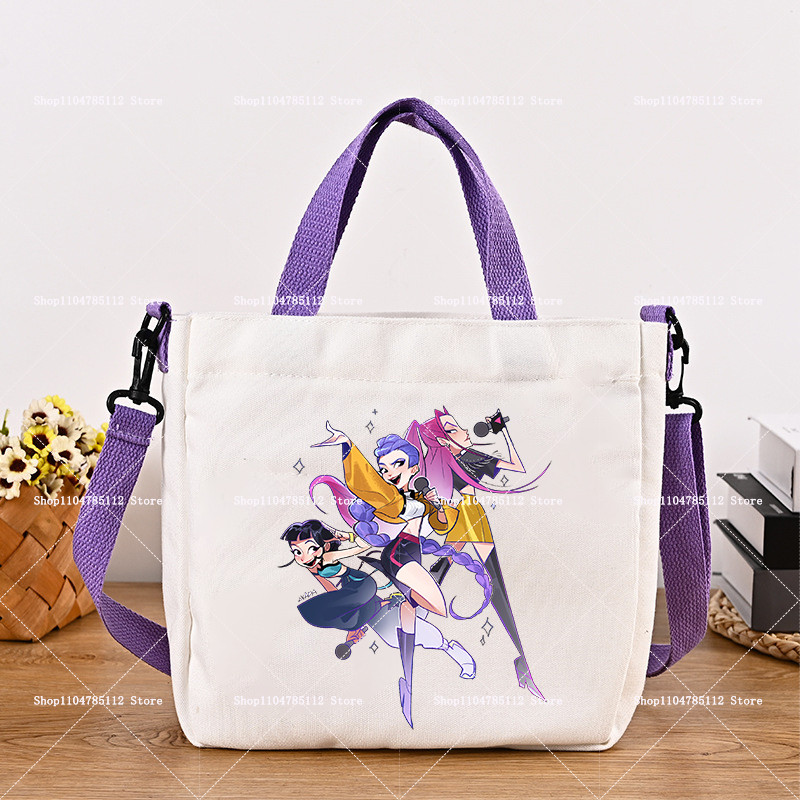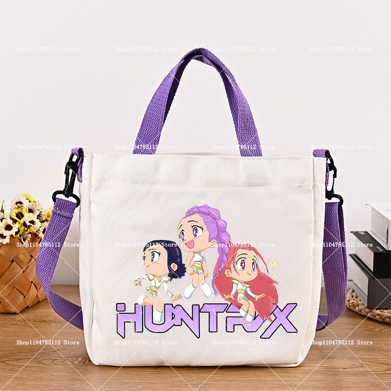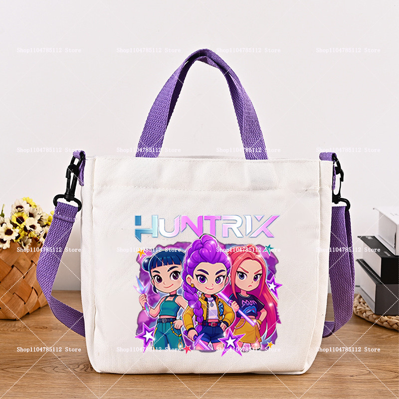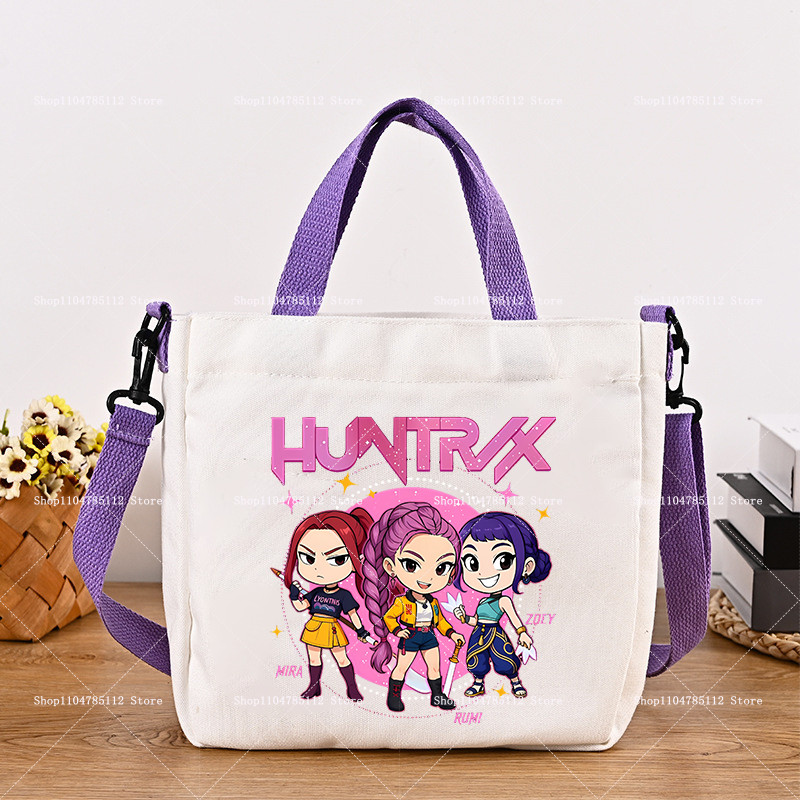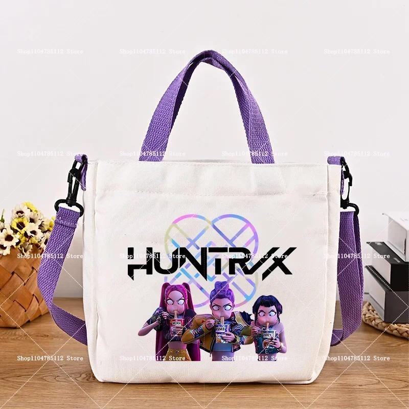 KPop Demon Hunters กระเป๋าสะพายและถือสีม่วง สไตล์แฟชั่นยอดนิยม สำหรับช้อปปิ้งทำจากผ้าใบ