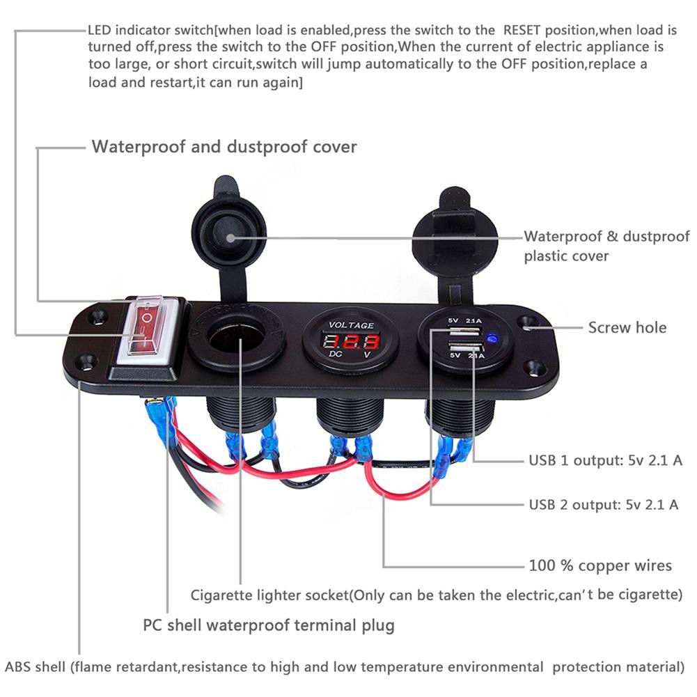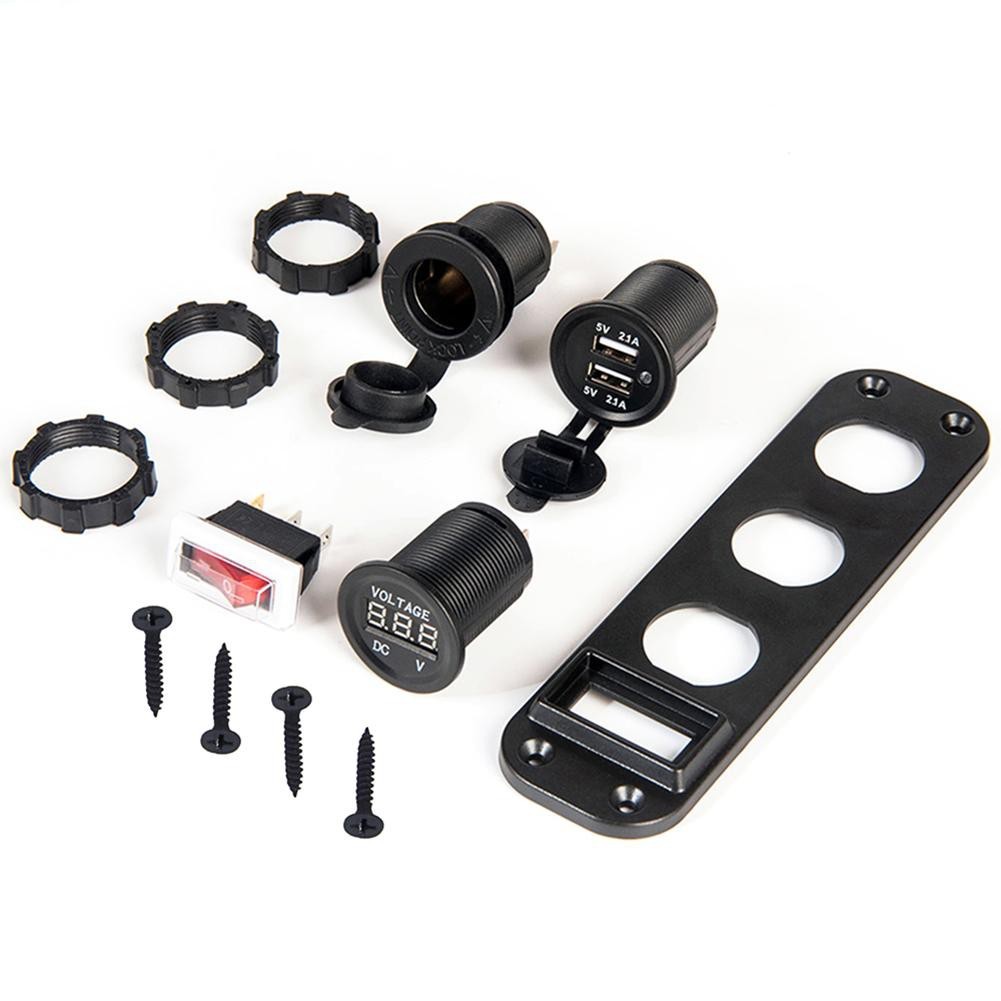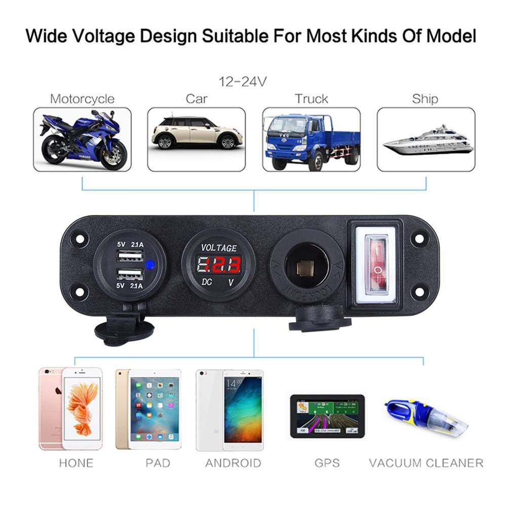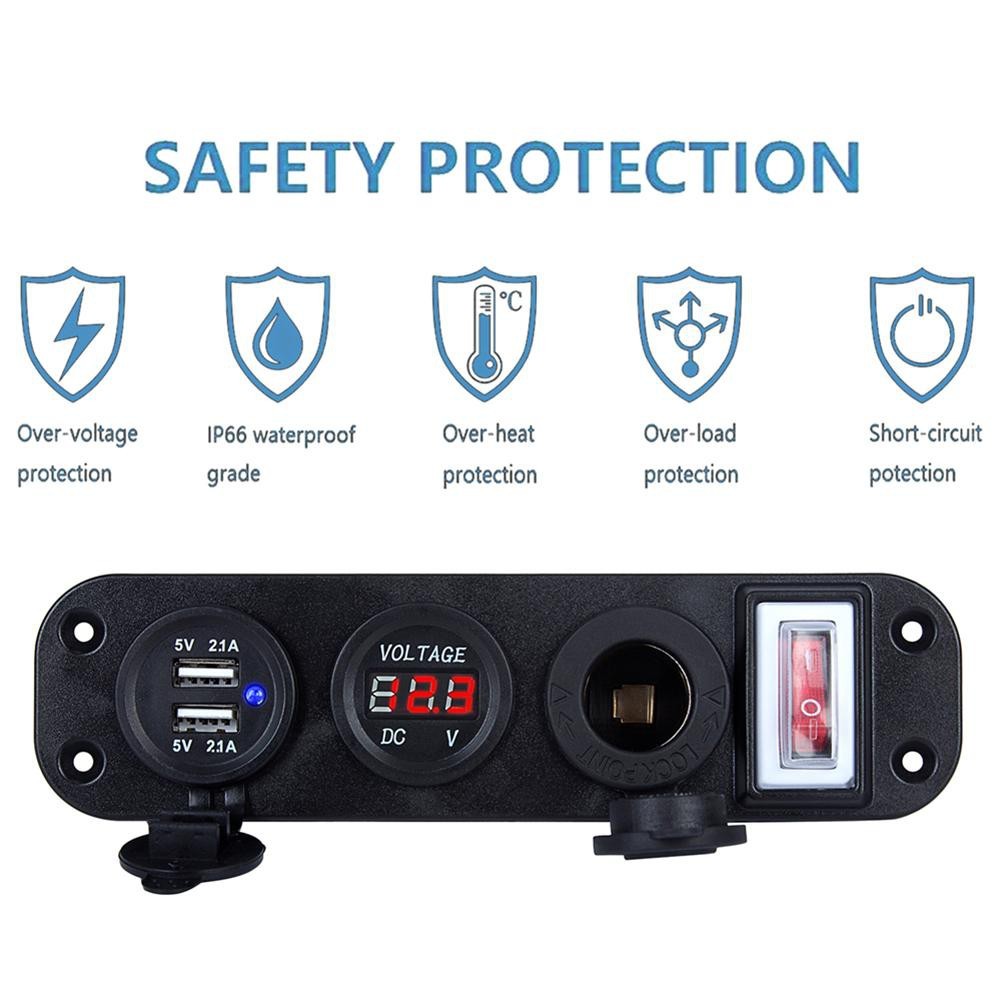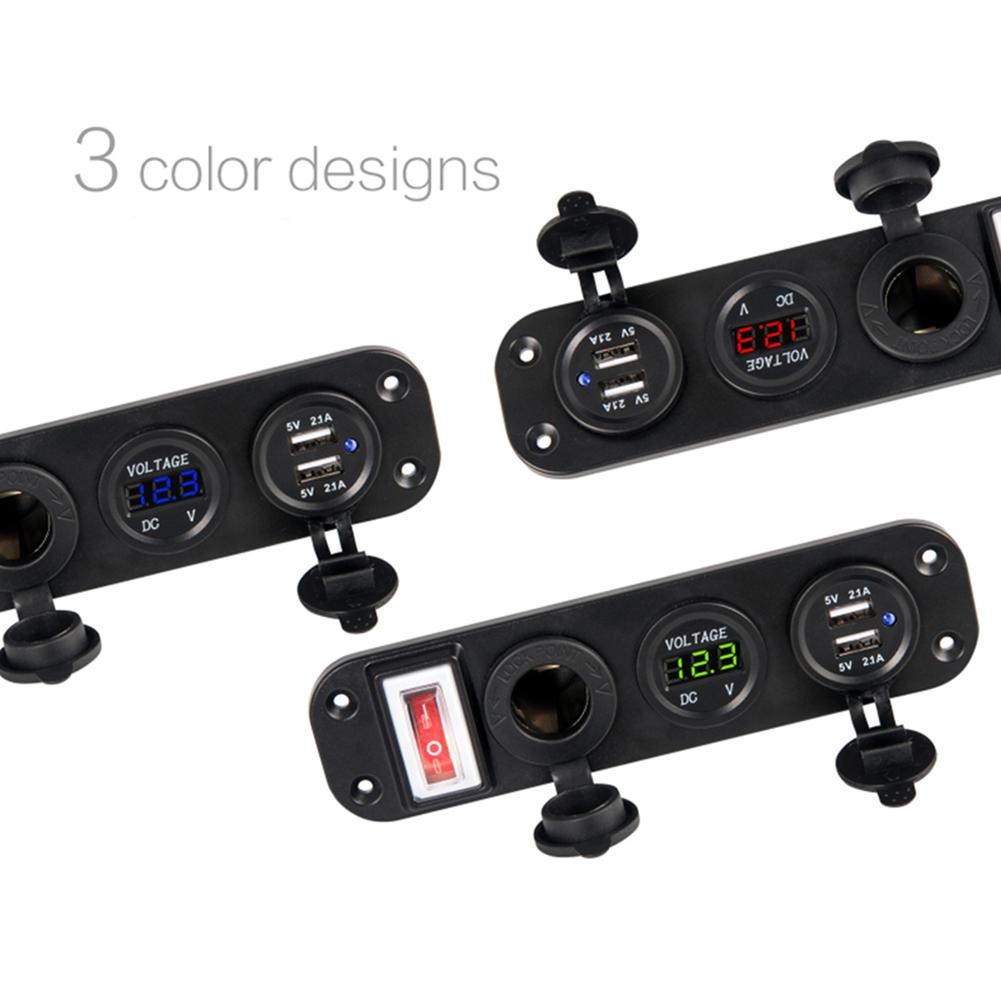 4 in1 ดิจิตอลโวลต์มิเตอร์ 12v power usb อะแดปเตอร์ซ็อกเก็ตที่ชาร์จ ที่จุดบุหรี่พร้อมสวิตช์ Socket(จัดส่งจากกรุงเทพ)