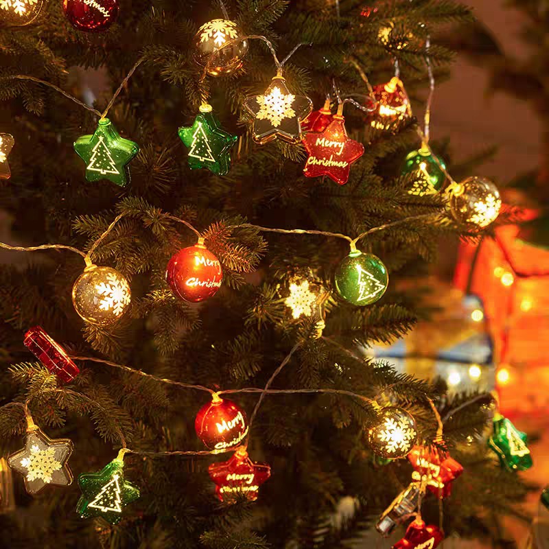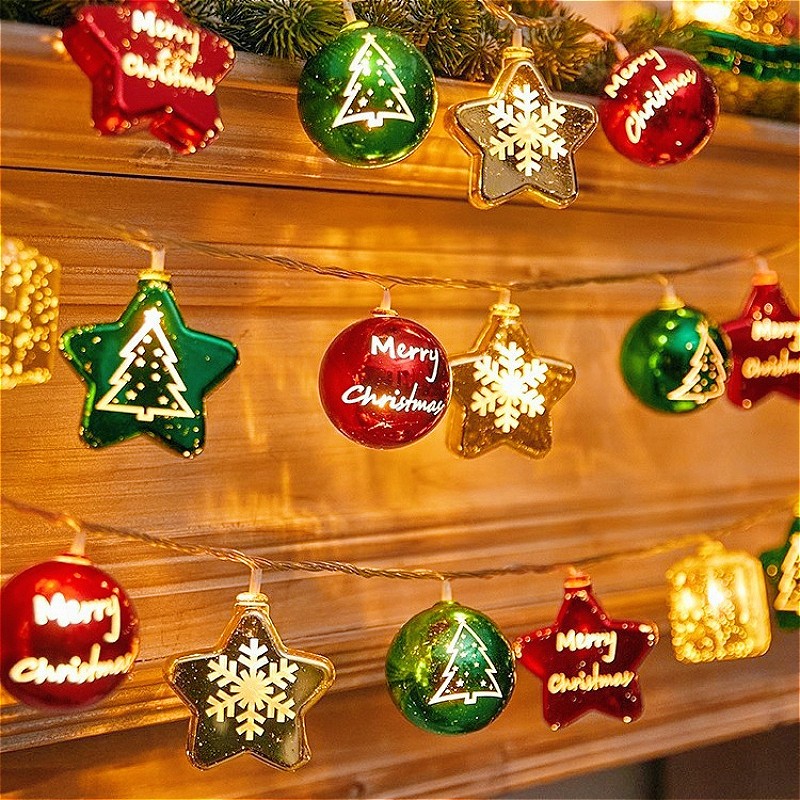 1.5/3M LED แบตเตอรี่คริสต์มาส Ball Light String Electroplating Ball Star Light String จี้ต้นคริสต์มาส Xmas ตกแต่งปาร์ตี้เค้าโครงแขวนตกแต่งบ้านไฟคริสต์มาส