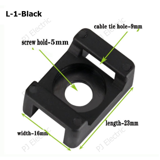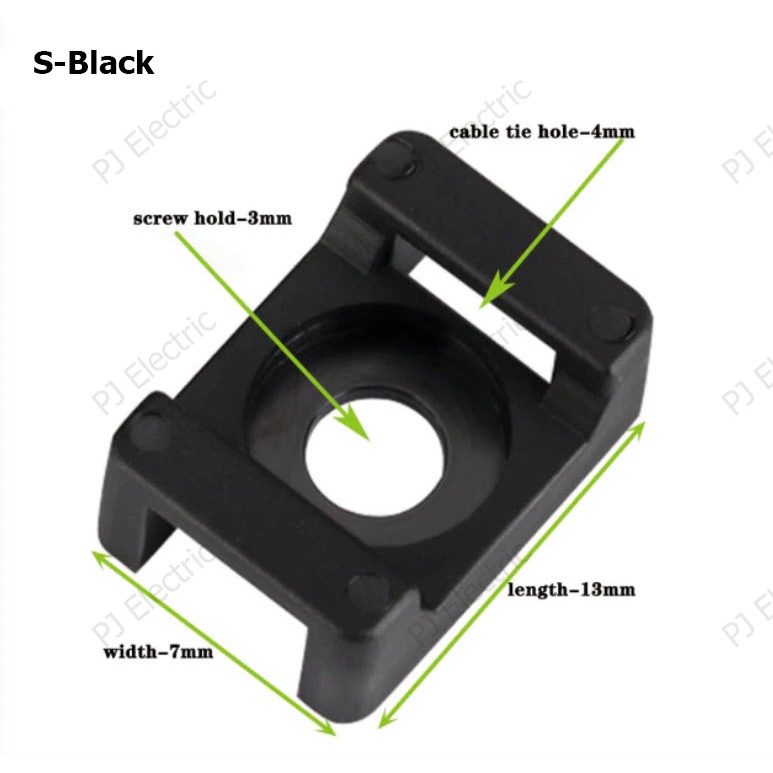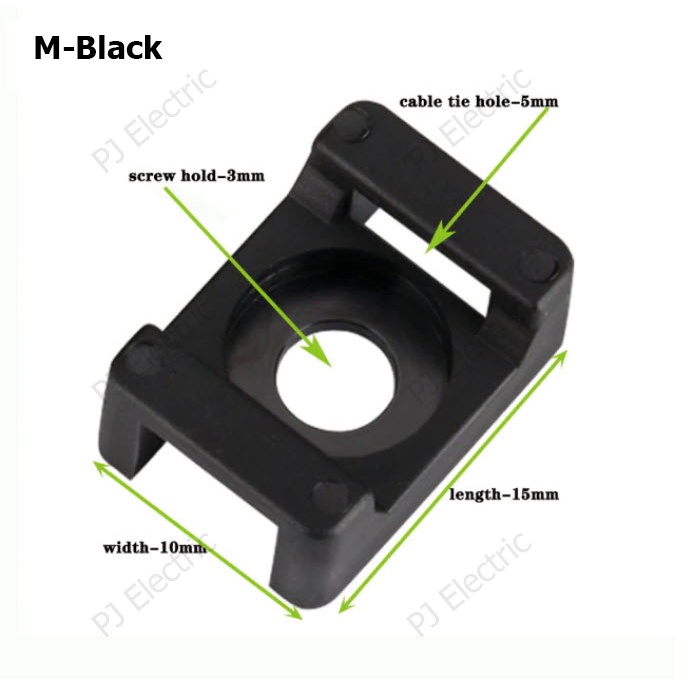 50 แป้นสกรูยึดเคเบิ้ลไทร์สีดำหรือขาว (Saddle Type Tie Mount) มี 3 ขนาดให้เลือก เล็ก กลาง หรือ ใหญ่