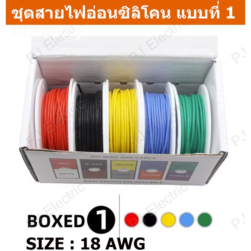 สายไฟอ่อน 18 24 AWG ( UL1007 ) ใช้สำหรับเชื่อมต่อภายในอุปกรณ์อิเล็กทรอนิกส์และอุปกรณ์ไฟฟ้าทั่วไป (1 กล่องมี 5 สี)