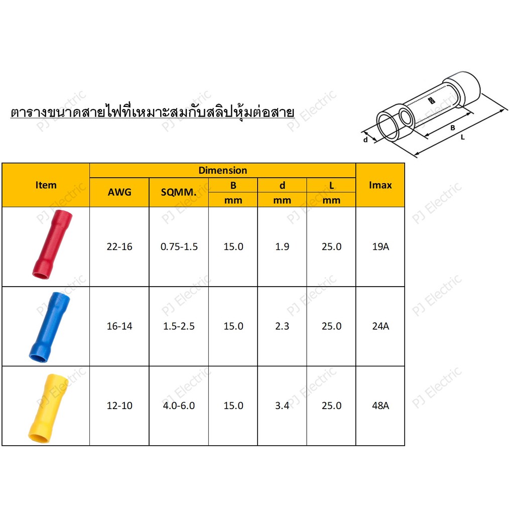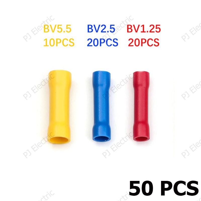 50 ชิ้น สลิปหุ้มต่อสาย เทอร์มินอล ข้อต่อ ตัวจั๊มสายไฟแบบมีฉนวน