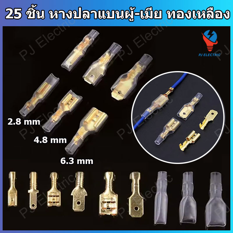 25 ชิ้น หางปลาแบน หางปลาเสียบแบน หางปลาแบนต่อสายไฟ ขนาด 2.8,4.8 หรือ 6.3 mm ตัวผู้,ตัวเมีย หรือปลอกยาง