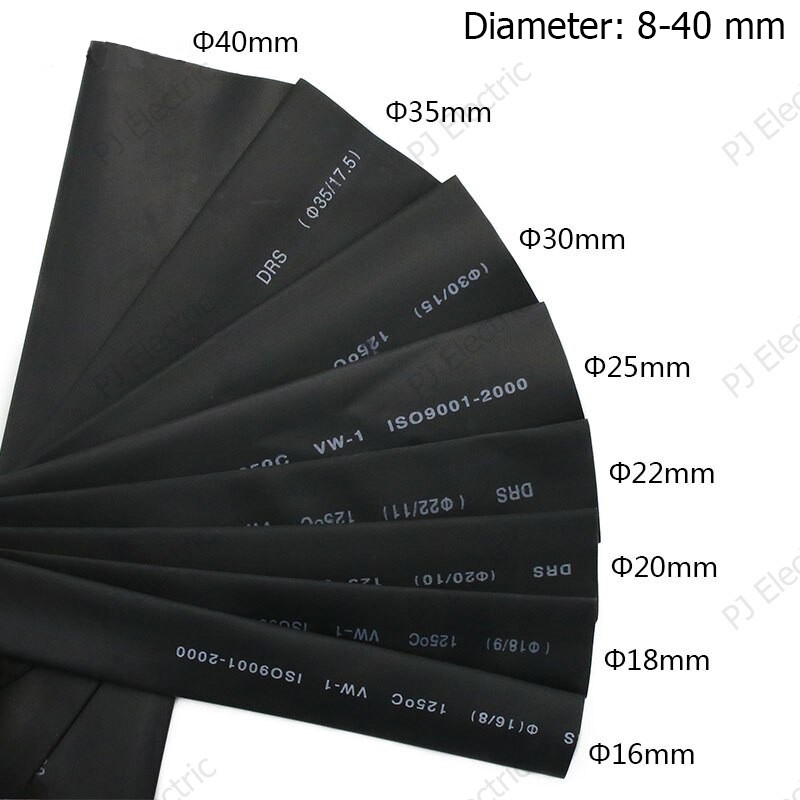 ท่อหดสีดำ ความยาว 1 เมตร สัดส่วนการหดตัว 2:1 ขนาด 6,8,10,12,14,15,16,18,20 มิลลิเมตร(เลือกขนาด) แบบใช้ความร้อน