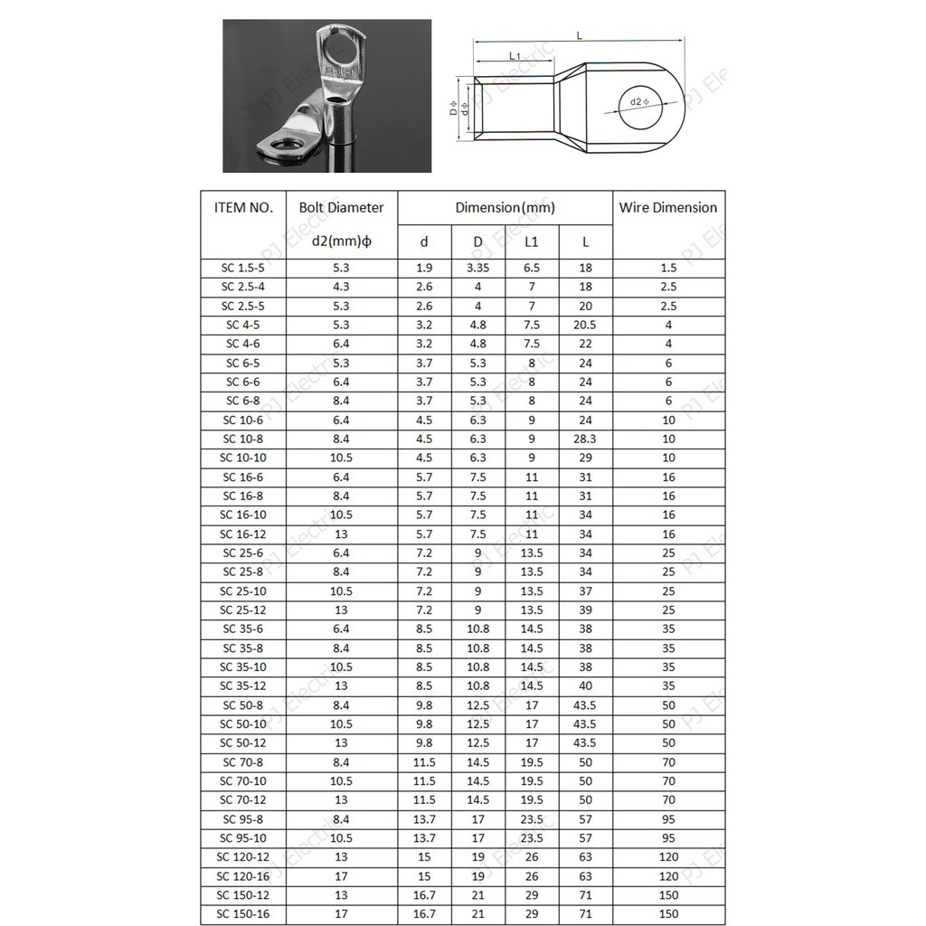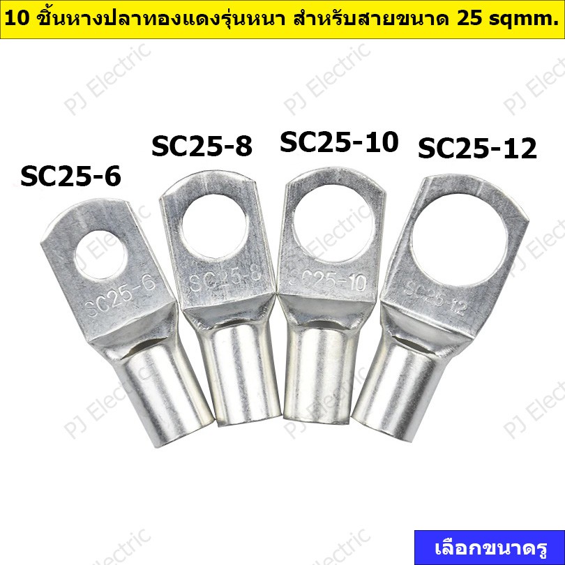 10 ชิ้น หางปลาทองแดงรุ่นหนา หางปลาแบตเตอรี่ หางปลาทรงยุโรป สำหรับสายขนาด 25 sq.mm สำหรับรูสกรู 6 ,8,10,12 มิลลิเมตร