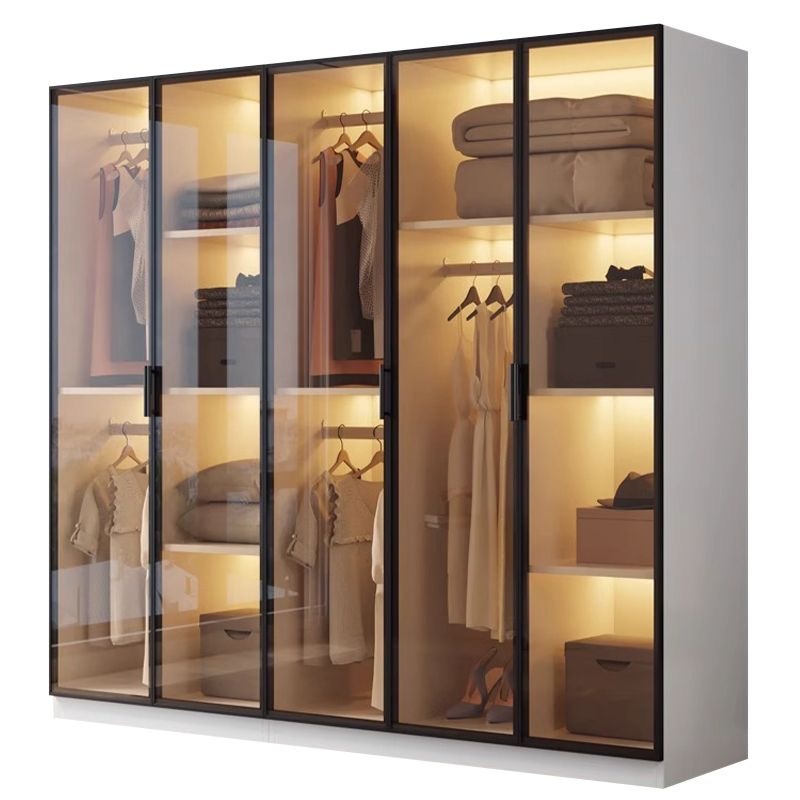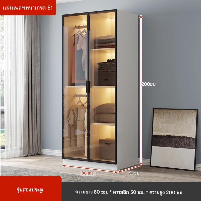 ตู้เสื้อผ้าไม้ ตู้เสื้อผ้าหรูหรา ตู้เสื้อผ้าบานกระจกพร้อมไฟ LED สูง 200 ซม. กว้าง 50 ซม.