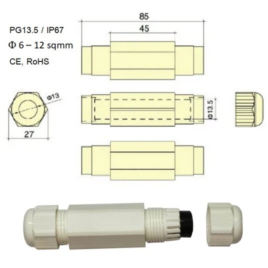 (2 pcs) Waterproof Wire Connector IP67 / ข้อต่อสายไฟแบบกันน้ำ IP67 (เฉพาะตัว Connector)