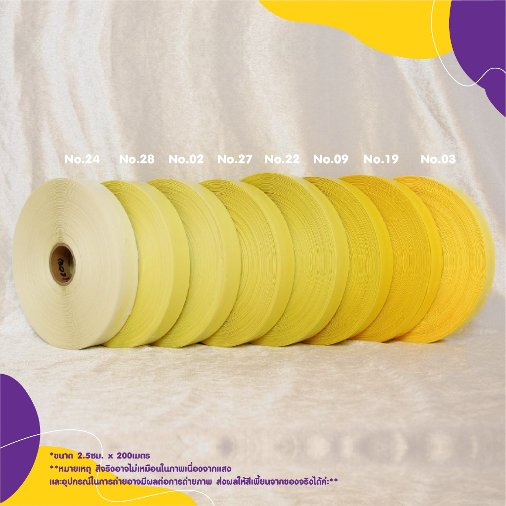 (ม้วนเล็ก) ผ้าโพลีออยผิวเงา ผ้าทำบายศรี ผ้าทำคอม้า ขนาดหน้า กว้าง 2.50 ซม. ยาว 200 เมตร