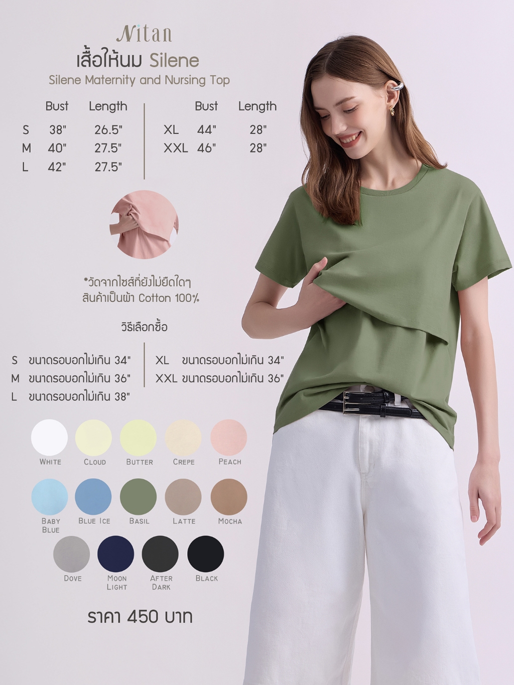 Nitan (นิทาน) เสื้อให้นมบุตร รุ่น Silene Nursing Top เนื้อผ้า Cotton 100%