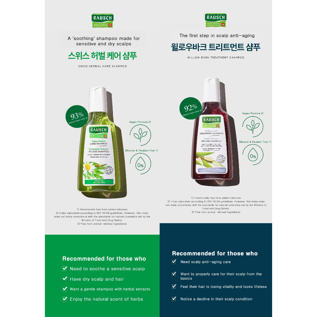 [Rausch] แชมพู 200ml / Swiss Herbal / Willow Bark / Coltsfoot / Seaweed / Avocado / Mallow / Chamomile-Amaranthium / Egg-Oil / Heartseed / Made in Switzer [จัดส่งจากเกาหลี]