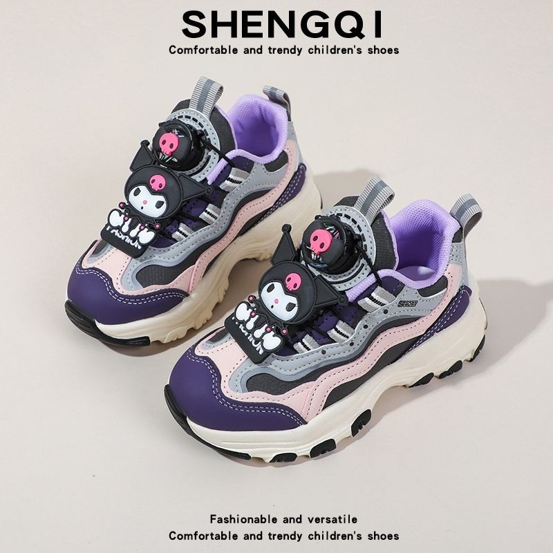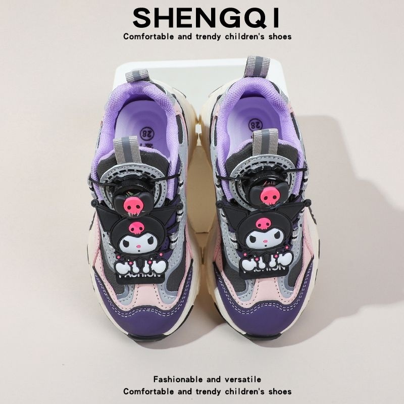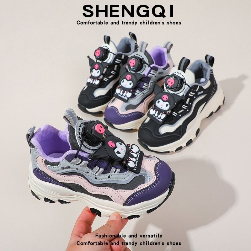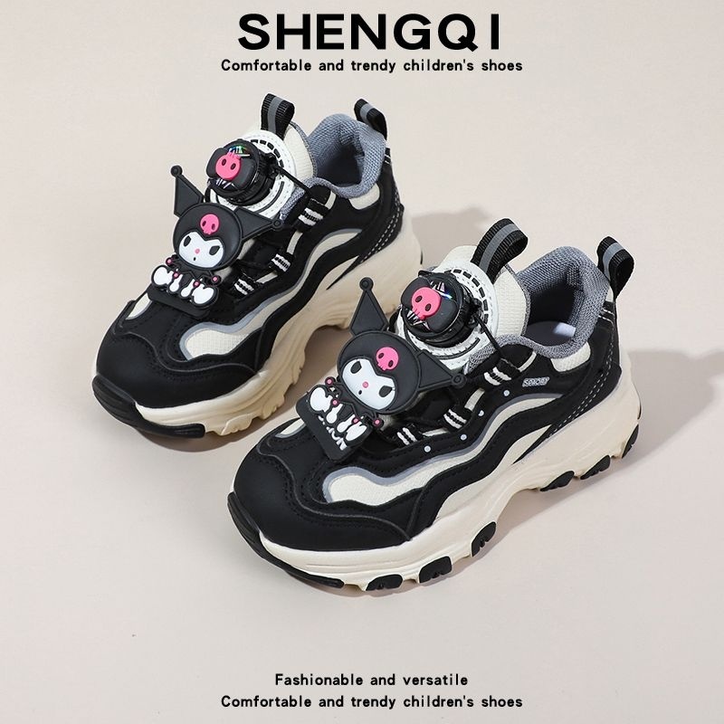 สินค้าใหม่ ผมตรง คุโรมิ หญิงรองเท้าเดียว 2024 ฤดูใบไม้ผลิฤดูใบไม้ร่วงสไตล์ใหม่เด็กกีฬารองเท้าหมุนหัวเข็มขัดหญิง พ่อ รองเท้านักเรียนอินเทรนด์ร