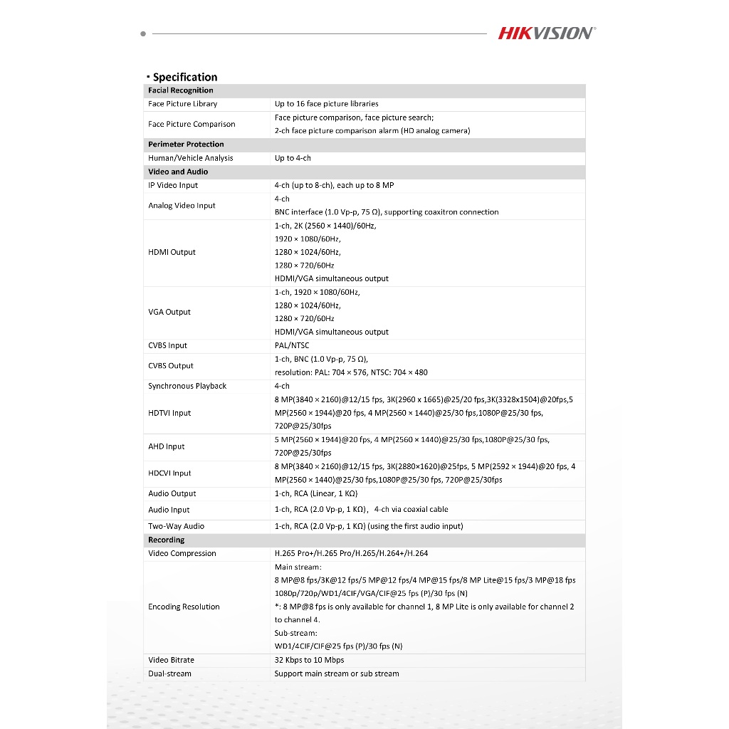 HIKVISION iDS-7204HUHI-M1/XT (4 CH) เครื่องบันทึกสำหรับกล้องวงจรปิดระบบ HD รองรับกล้อง Two-Way Audio ของ HIKVISION ได้