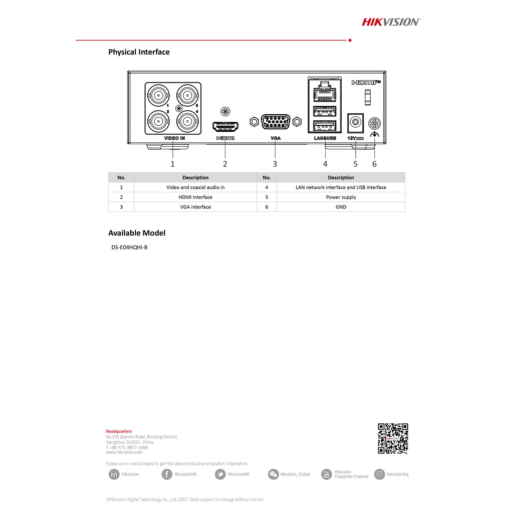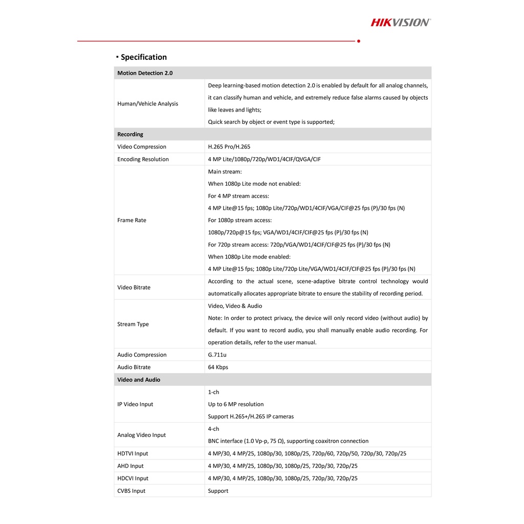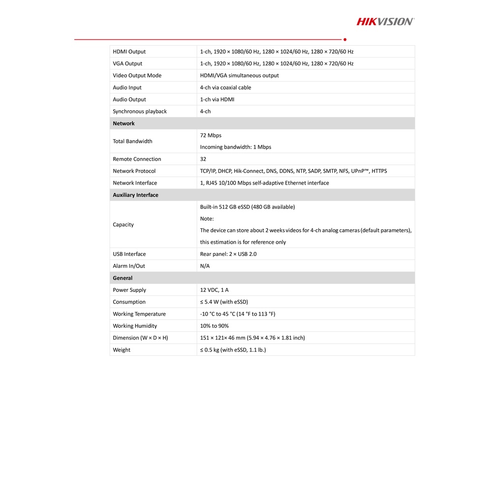 HIKVISION DS-E04HQHI-B eDVR 4CH เครื่องบันทึกกล้องวงจรปิดระบบ HD มีหน่วยความจำ Built-in ในเครื่อง (eSSD 512 GB)