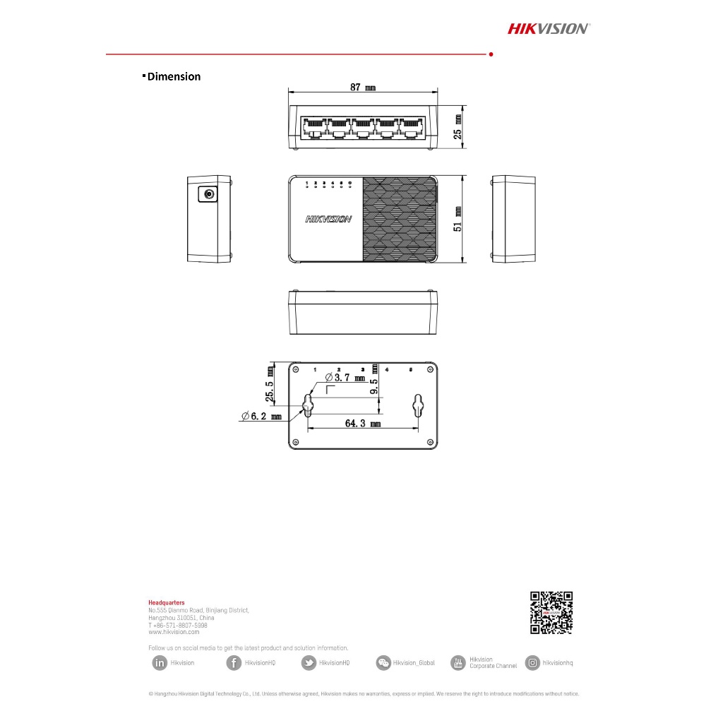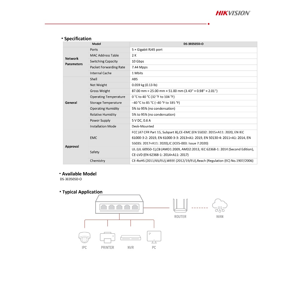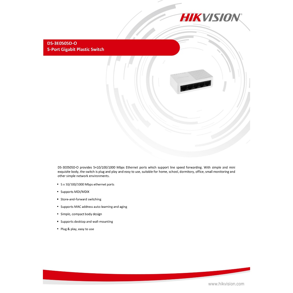 HIKVISION DS-3E0505D-O 5-Port Gigabit Plastic Switch BY BILLIONAIRE SECURETECH