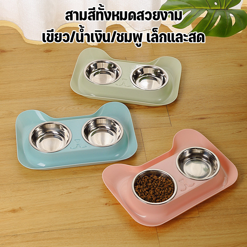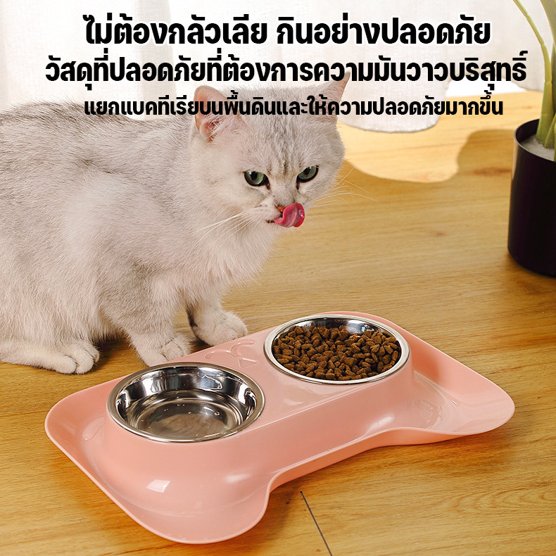 BHQ พร้อมจัดส่ง 2in1 ชามสัตว์เลี้ยง ชามอาหารแมว ชามอาหารกันมด ชาม2หลุม สแตนเลสถอดล้างได้ หมา แมว หน้าแมว