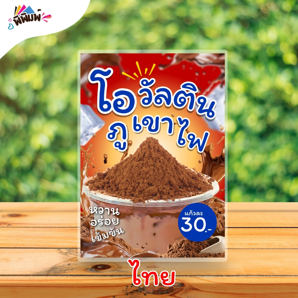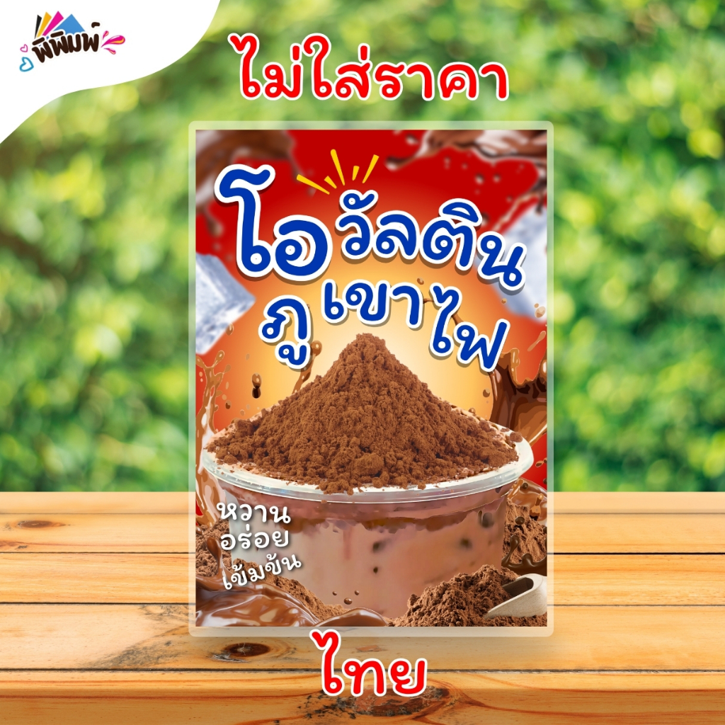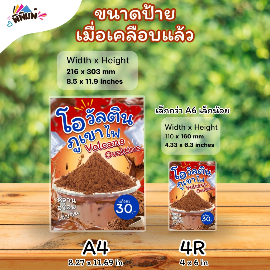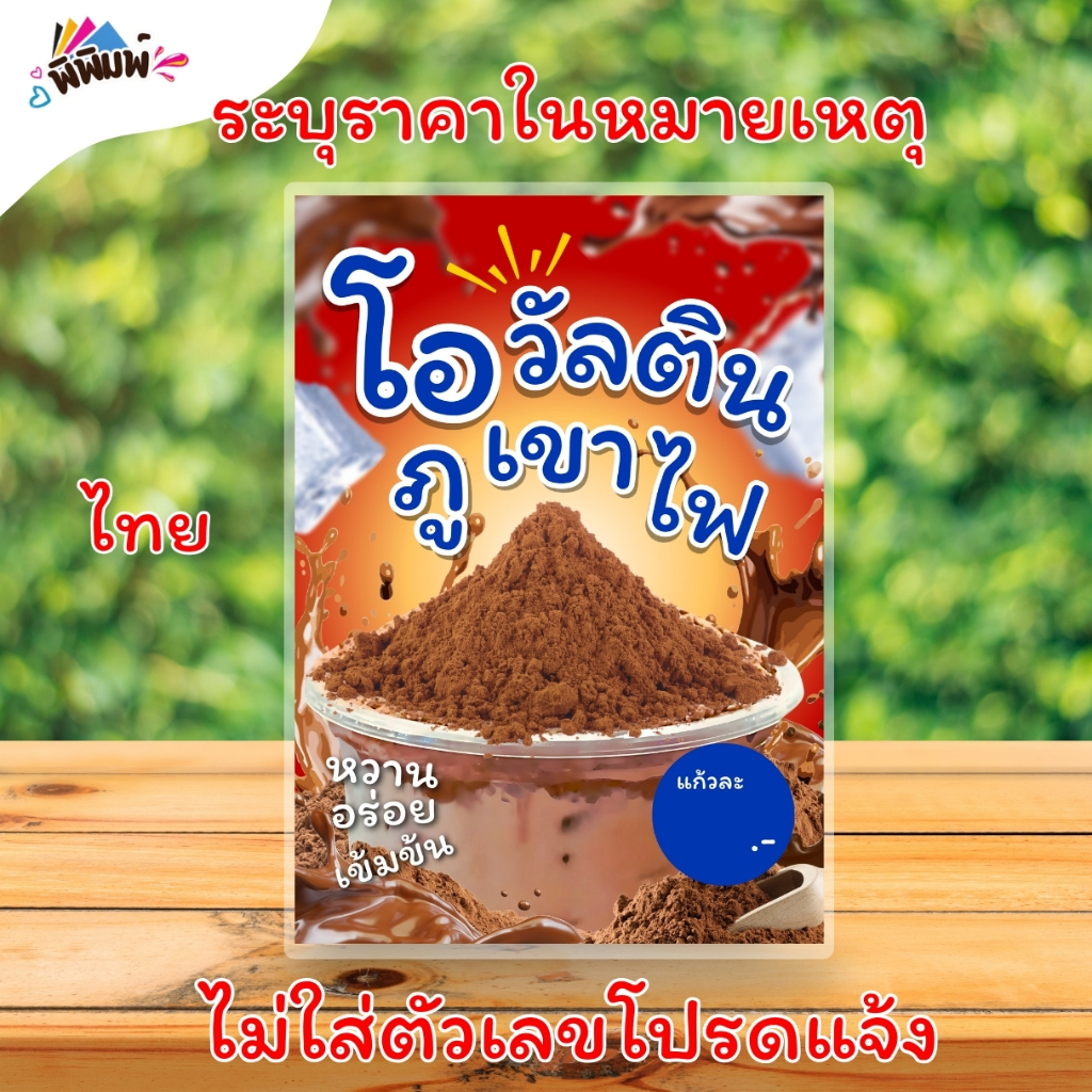 ป้ายเมนู โอวัลตินภูเขาไฟ / 2 ภาษา (แก้ว) A4 เคลือบแข็ง (A0108)