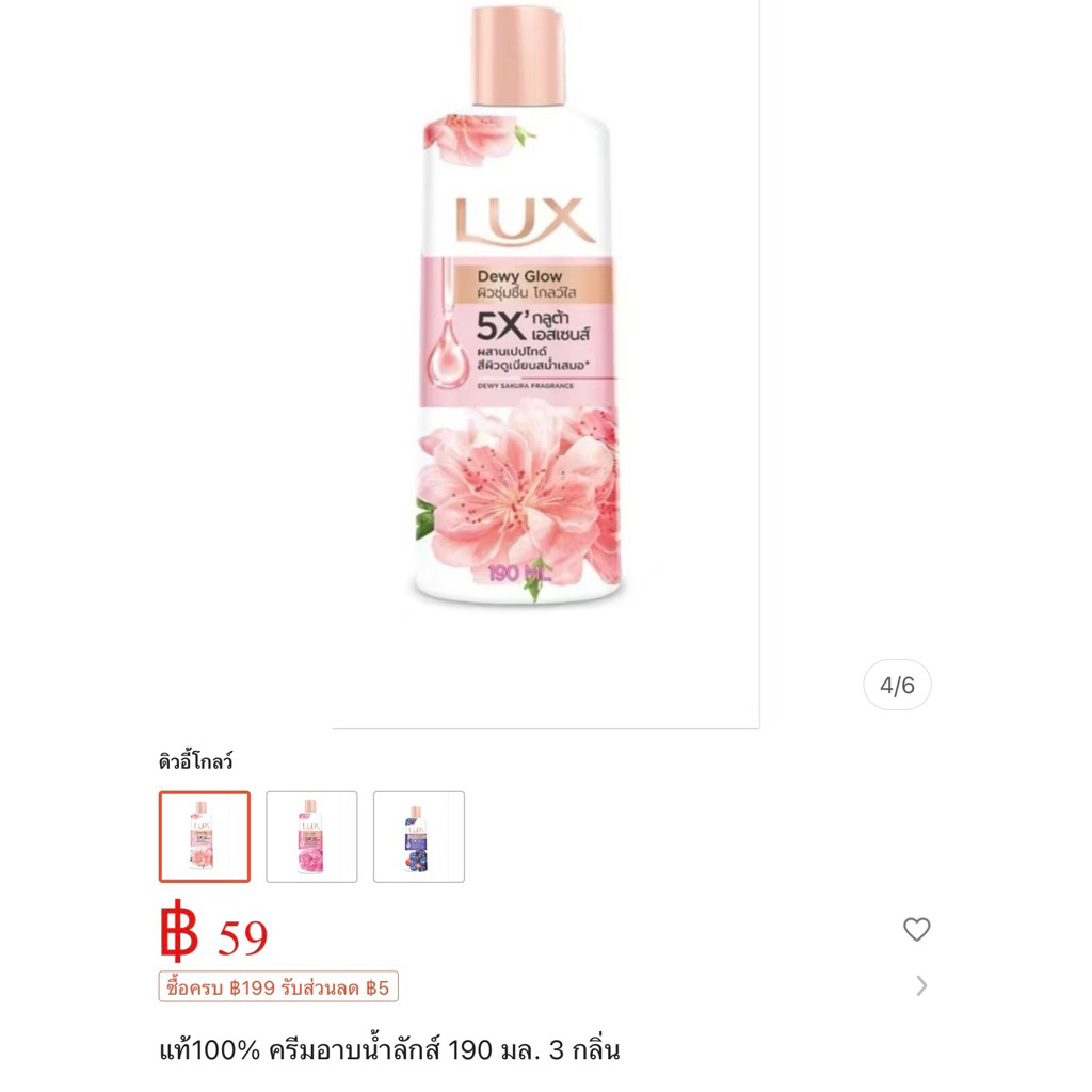 ครีมอาบน้ำ Lux ดิวอี้ โกลว์ กลิ่นซากุระ 190ml.