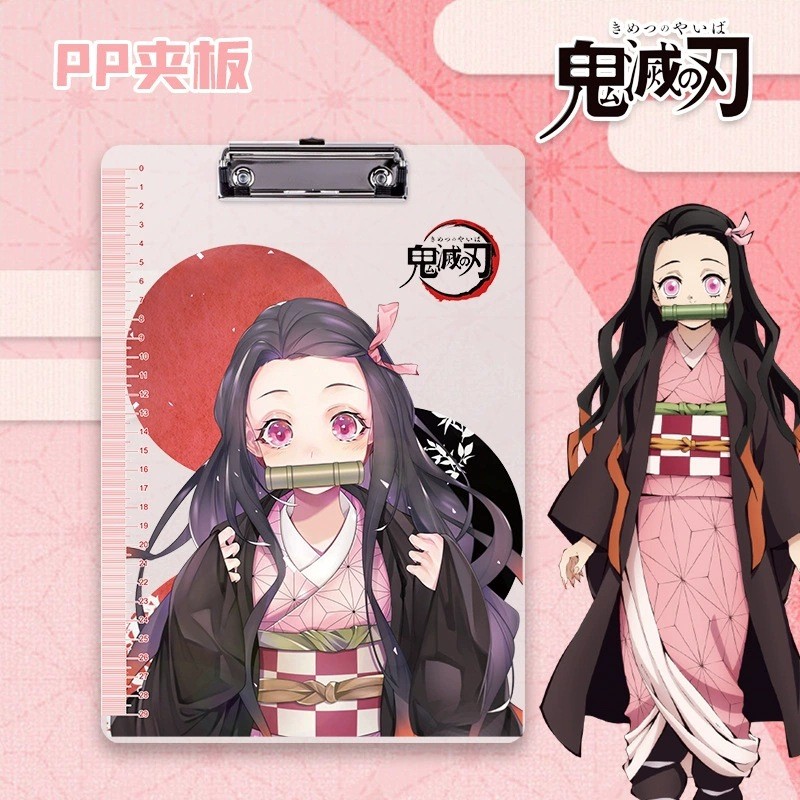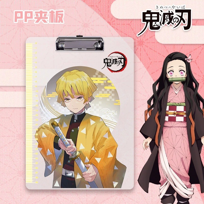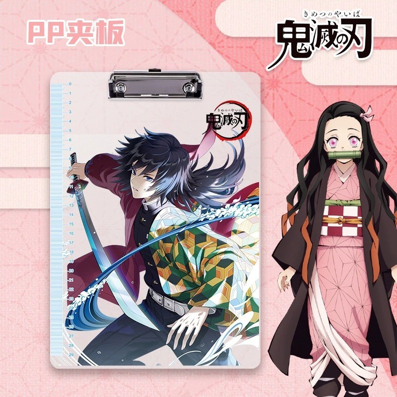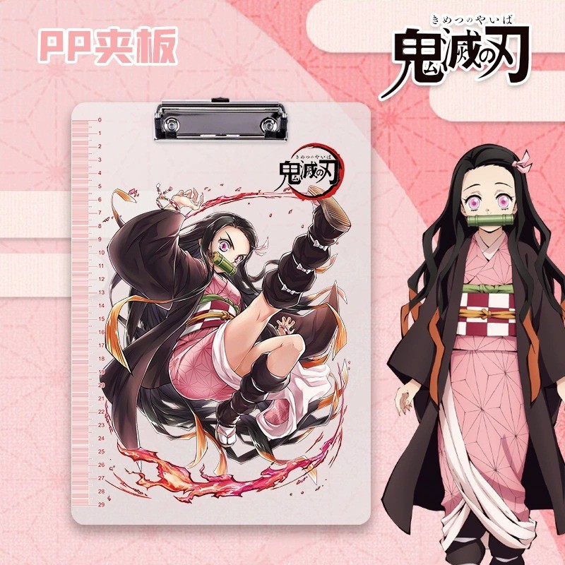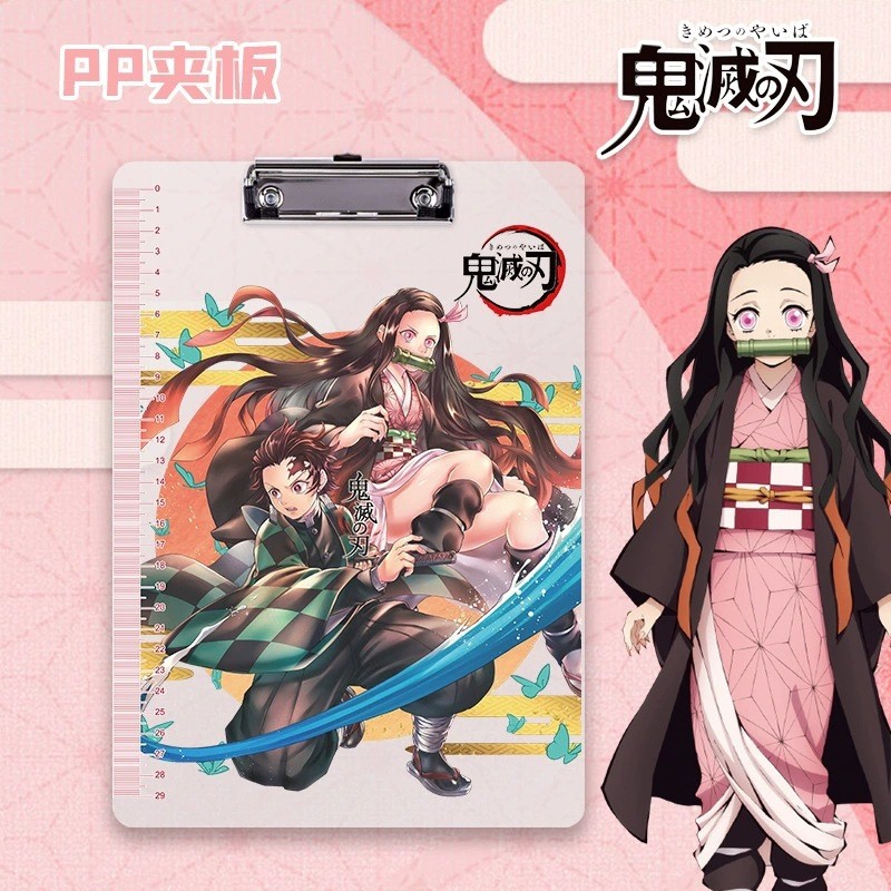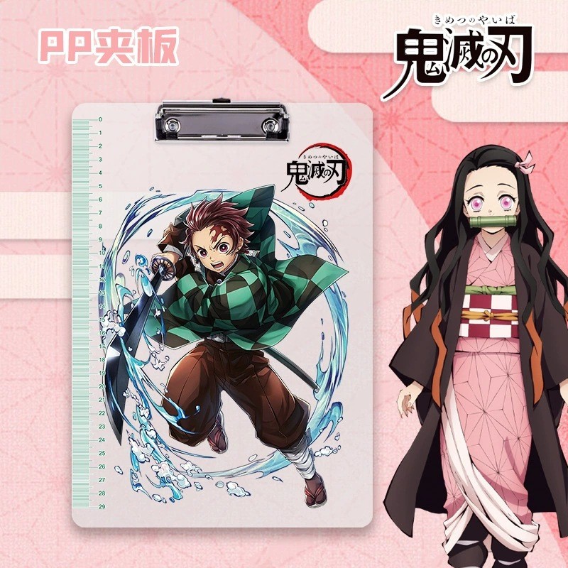 คลิปบอร์ด Demon Slayer: Kimetsu no Yaiba รุ่นโปร่งใสและด้าน แฟ้มเอกสาร A4 Tanjiro Nezuko แผ่น PP สำหรับนักเรียน