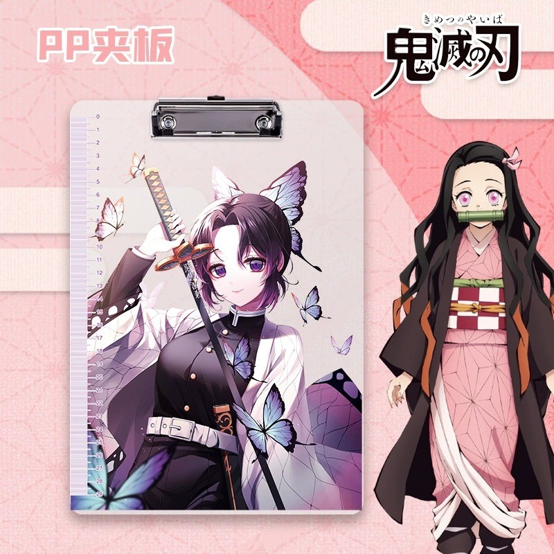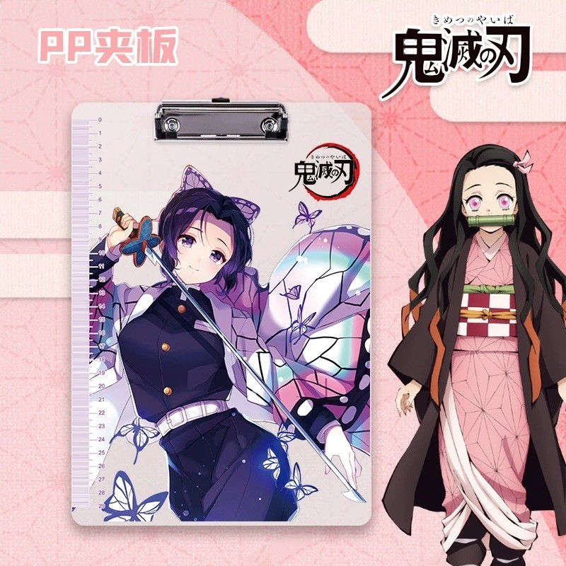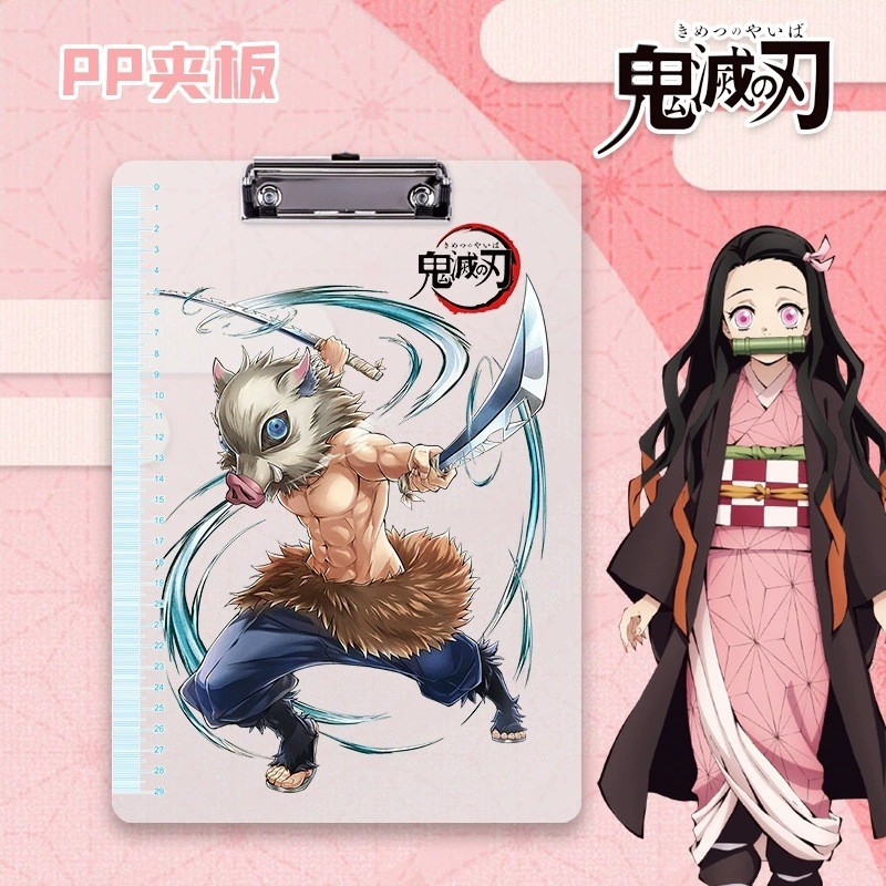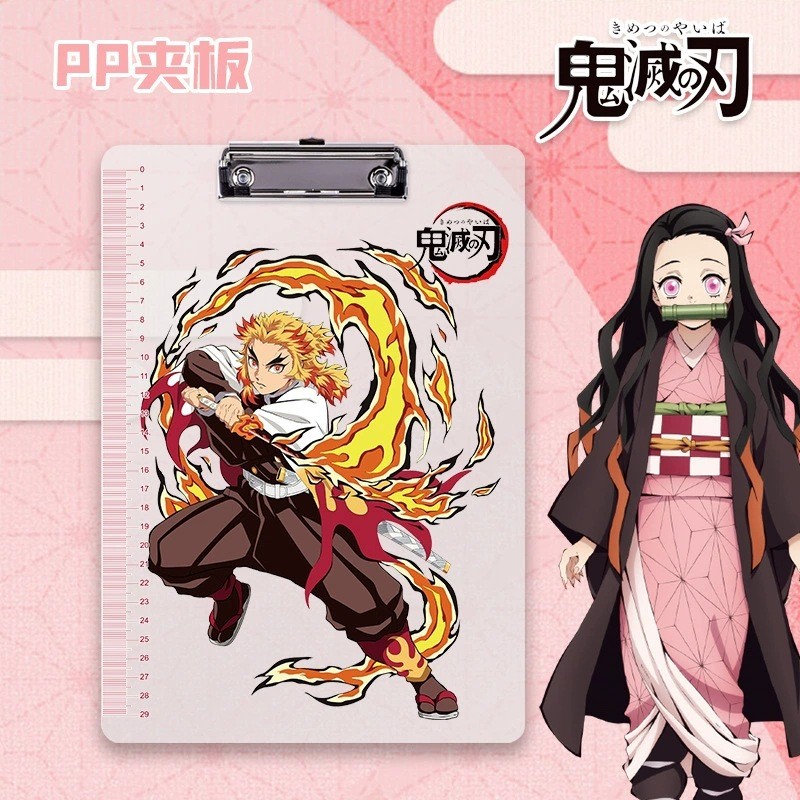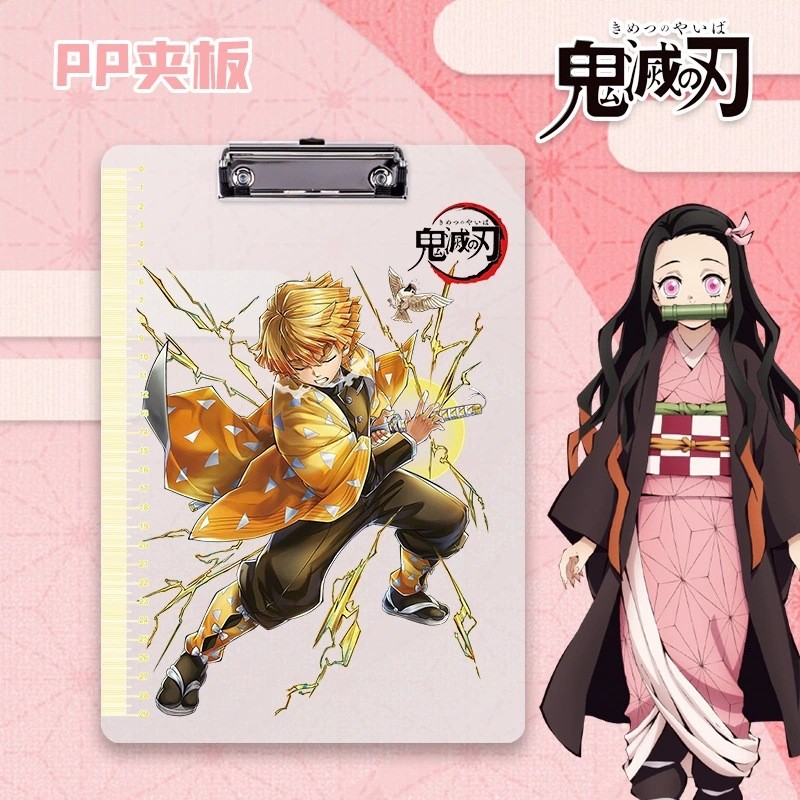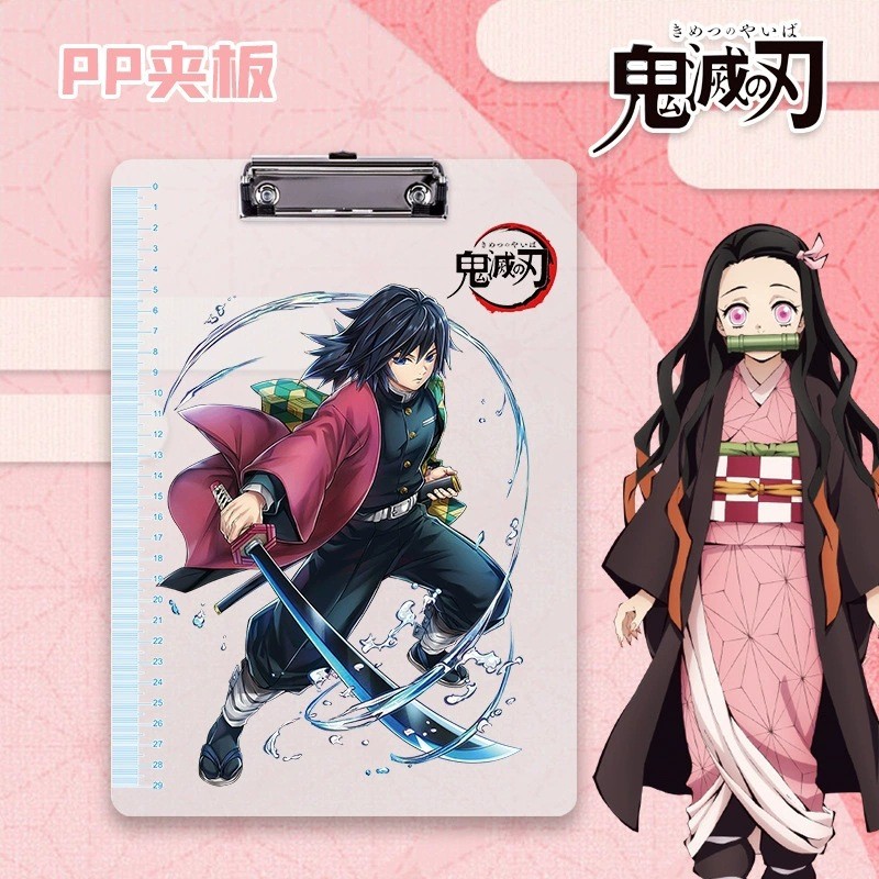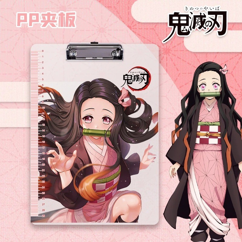 คลิปบอร์ด Demon Slayer: Kimetsu no Yaiba รุ่นโปร่งใสและด้าน แฟ้มเอกสาร A4 Tanjiro Nezuko แผ่น PP สำหรับนักเรียน