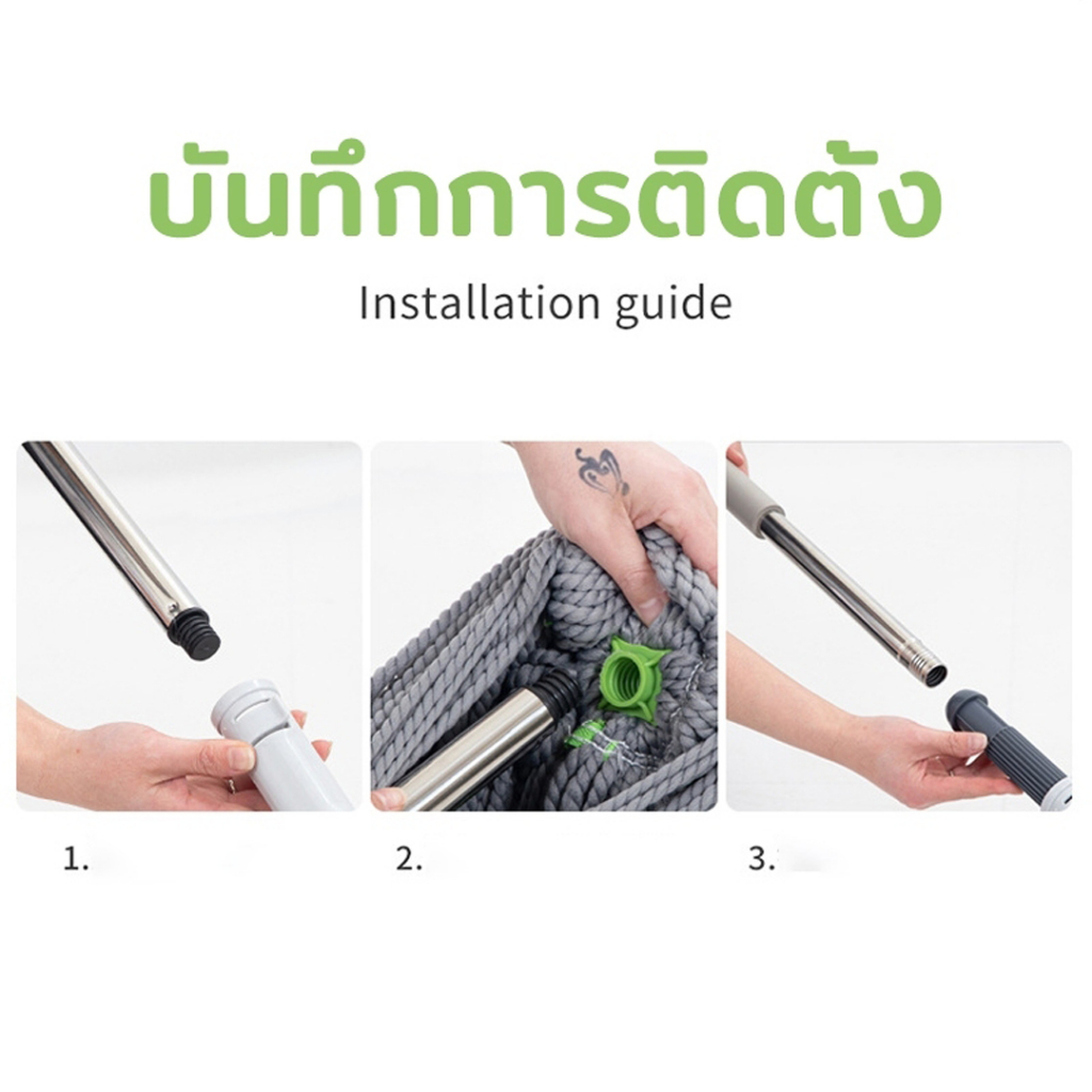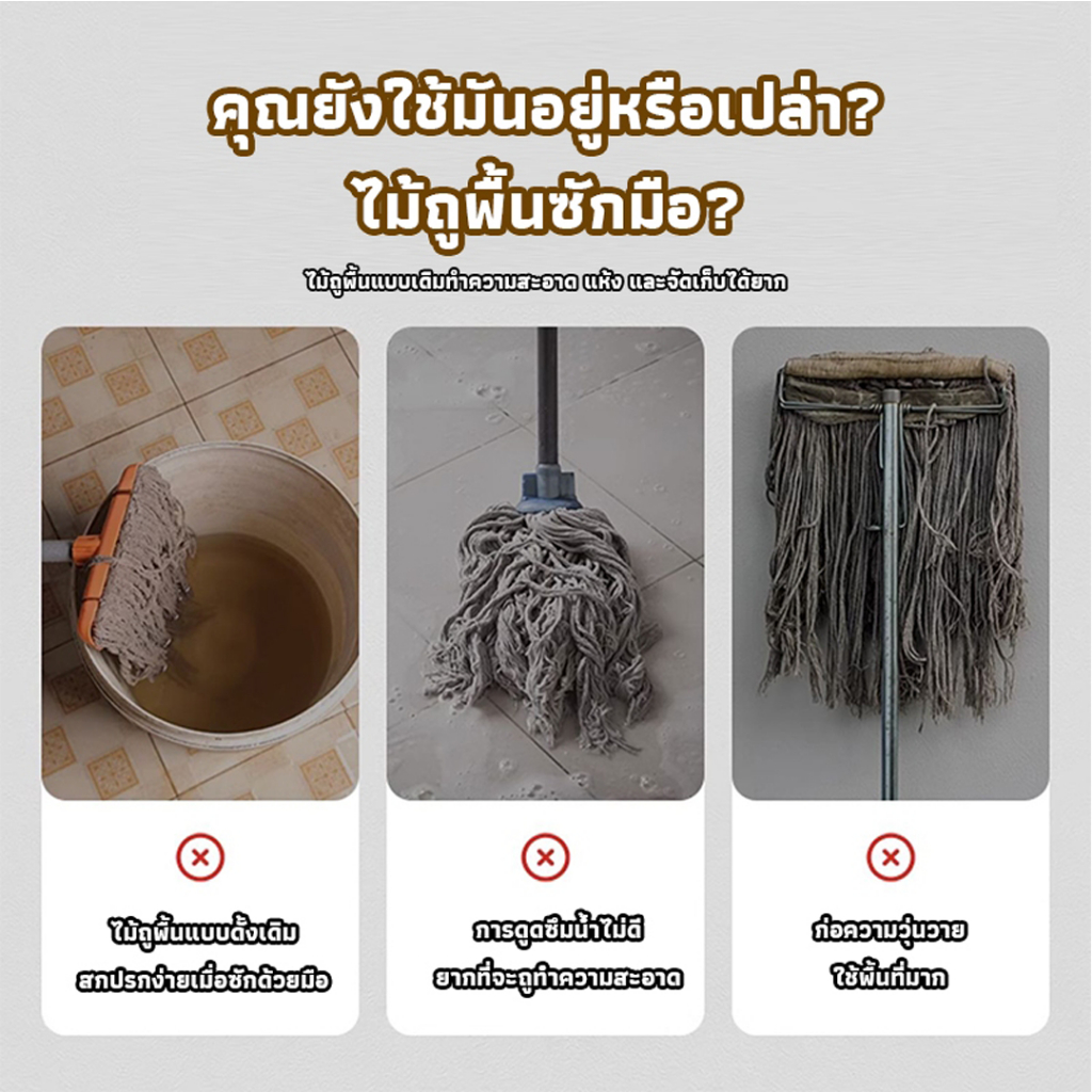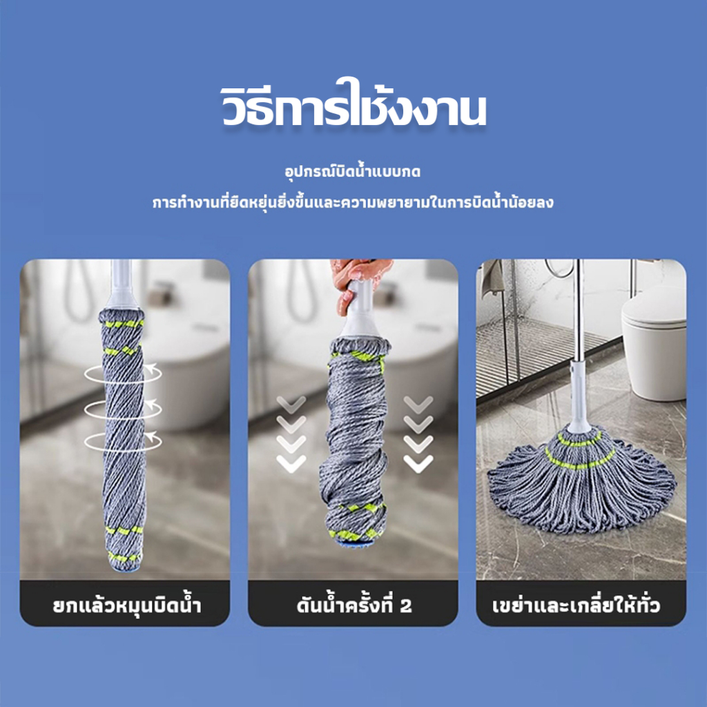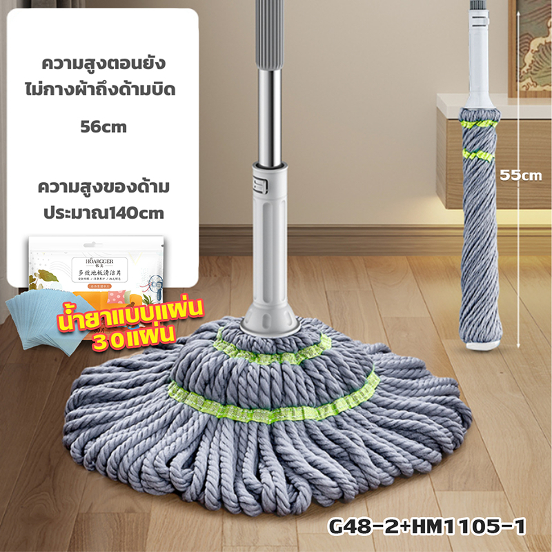 HOPTECH ไม้ม็อบถูพื้นแบบบิดล็อค ไมโคร ไฟเบอร์ รุ่นผ้าหนาพิเศษ ซับน้ำแห้ง/ ปรับความยาวได้
