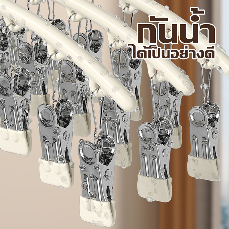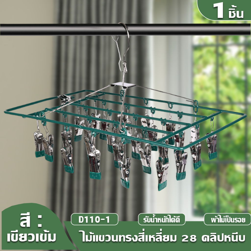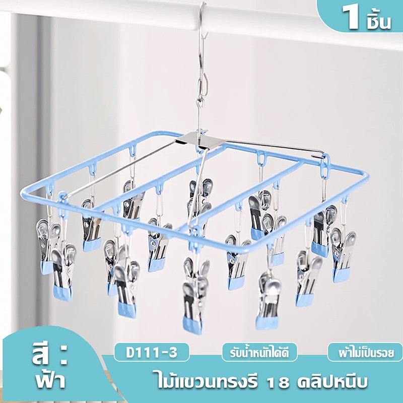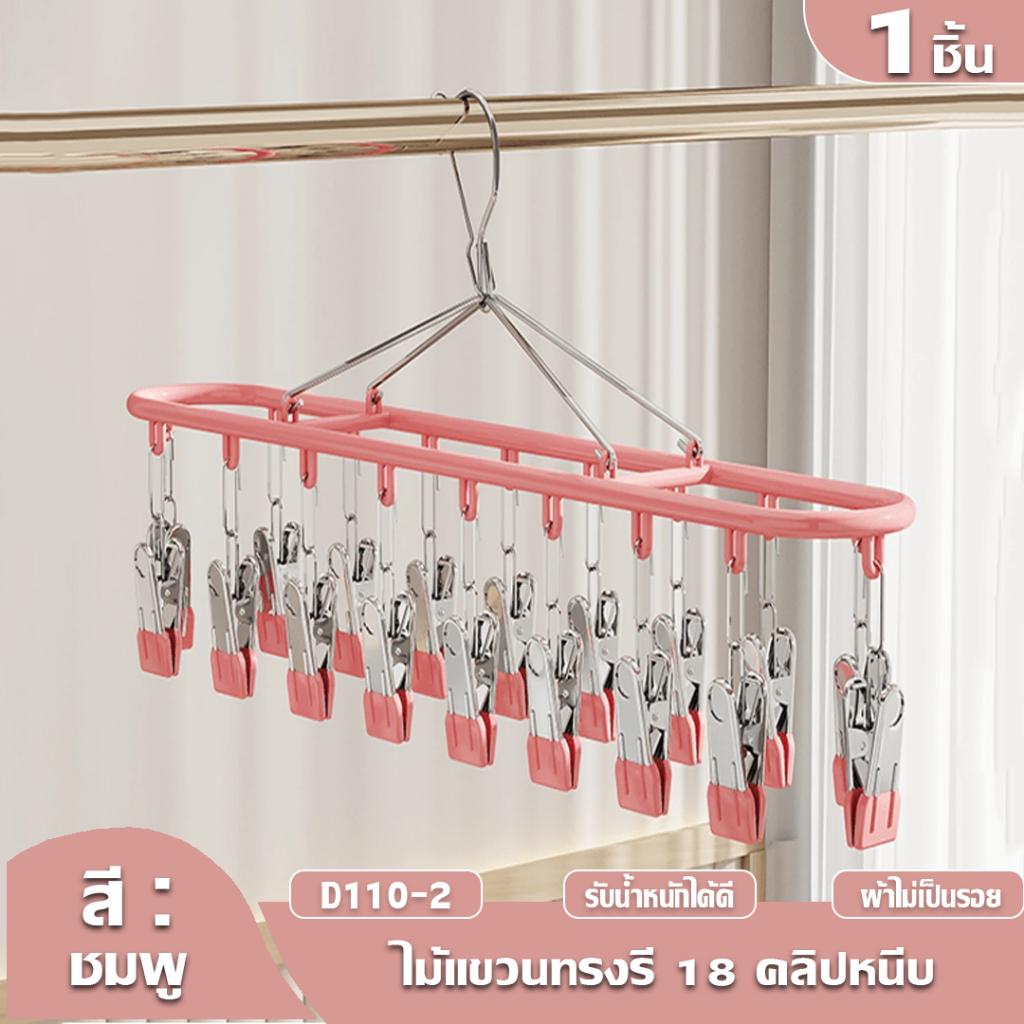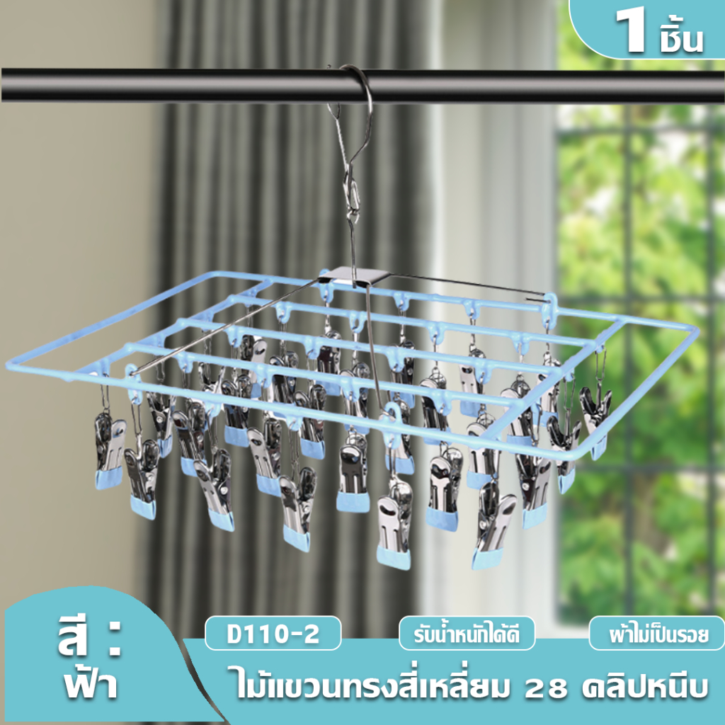 HOPTECH ห่วงแขวนเสื้อผ้า สเเตนเลสเคลื อบซิลิโคน ป้องกันสนิม แบบสี่เหลี่ยม 18/20/28 ตัวหนีบ