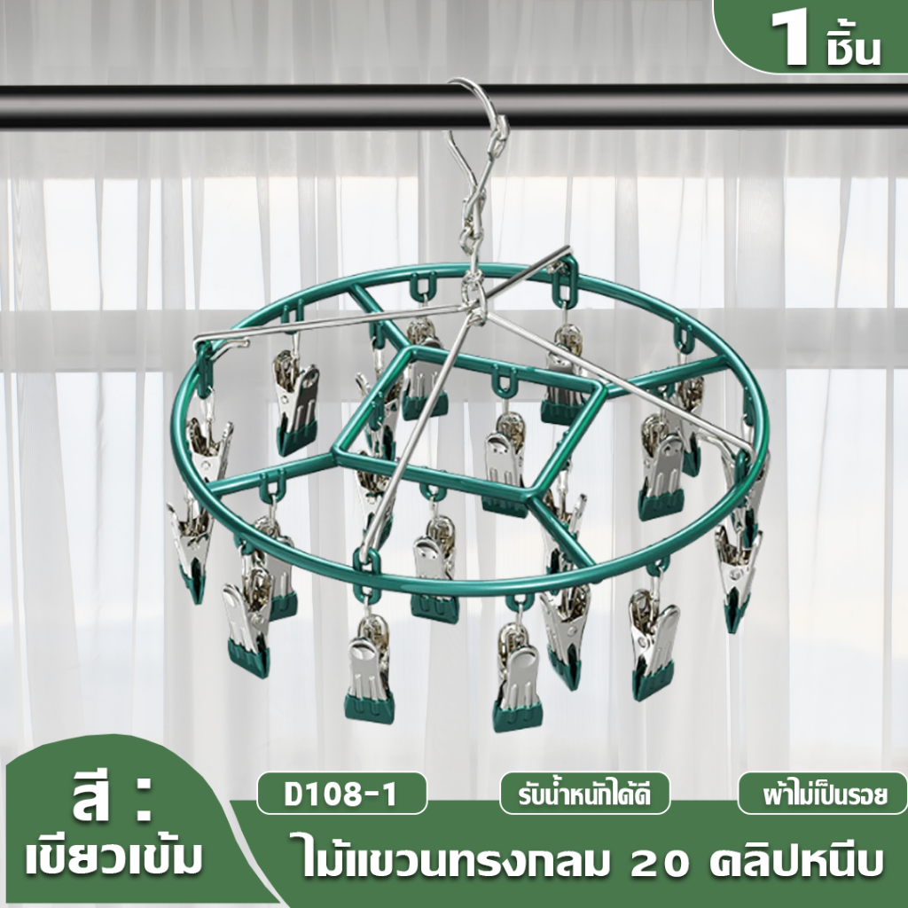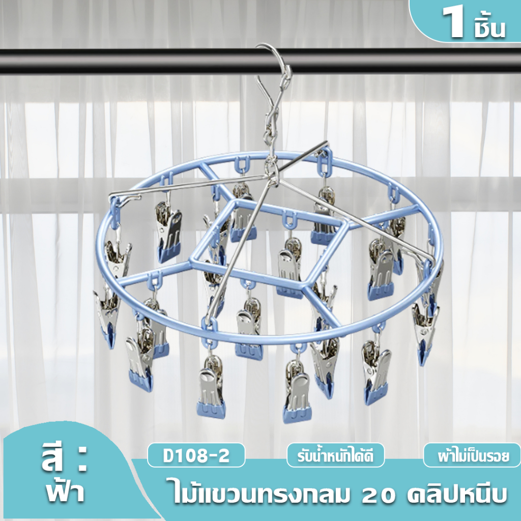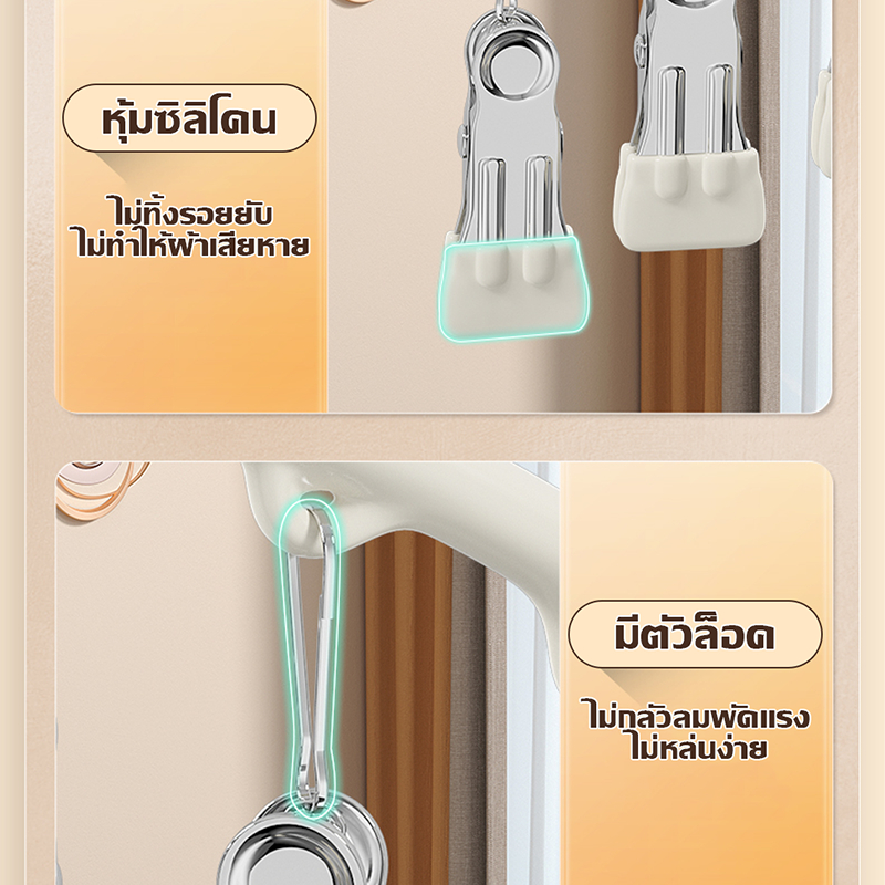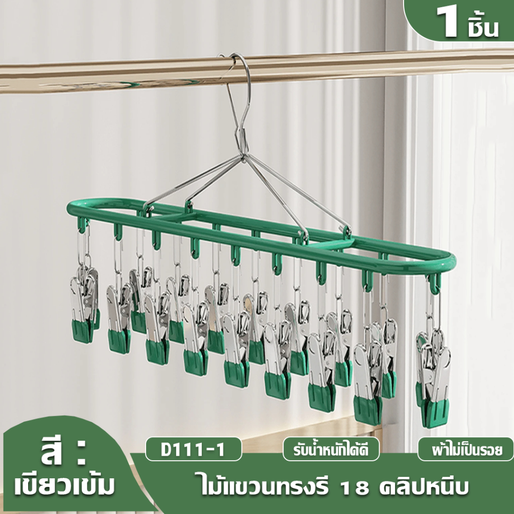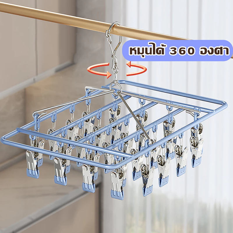 HOPTECH ห่วงแขวนเสื้อผ้า สเเตนเลสเคลื อบซิลิโคน ป้องกันสนิม แบบสี่เหลี่ยม 18/20/28 ตัวหนีบ