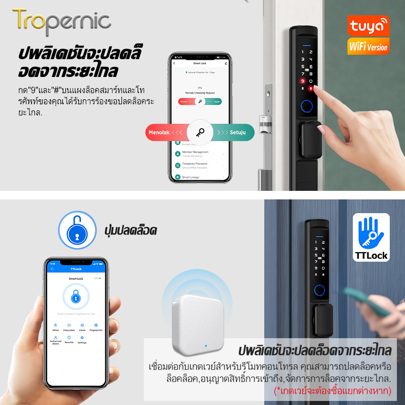【จัดส่งจากกรุงเทพฯ】Tropernic F2 Tuya/TTLOCK Digital Door Lock กุญแจล็อคประตูบานเลื่อนกันน้ำด้ามสั้น กลอนประตู 5 In 1 Smart Sliding Door Lock รหัสผ่านลายนิ้วมือป้องกันการโจรกรรมล็อคประตูบ้าน