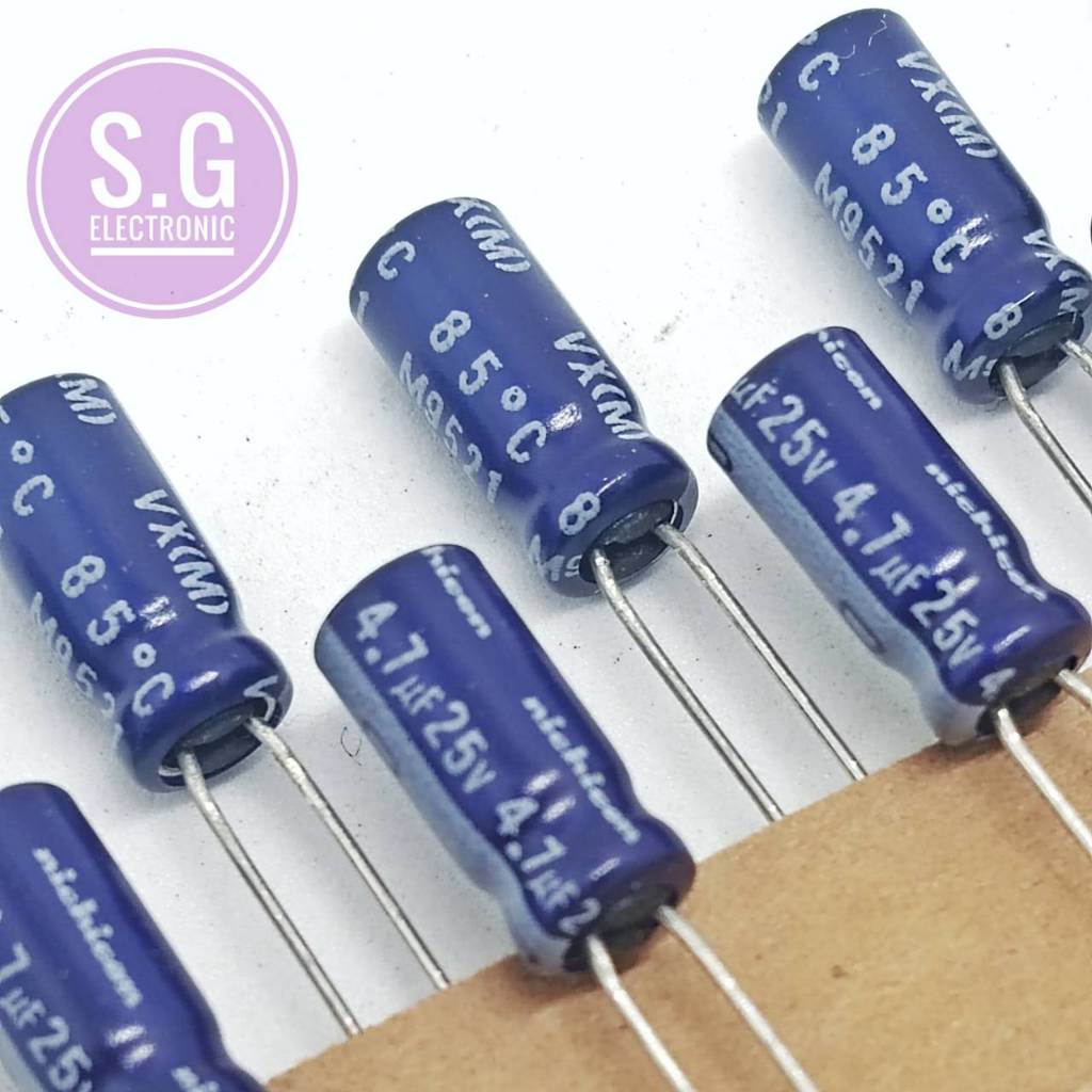 ((ชุด 10ชิ้น)) Nichicon 4.7uF 25V / ขา 2.5mm. / ขนาด 5x11mm. #Capacitor #ตัวเก็บประจุ #อิเล็กทรอไลท์