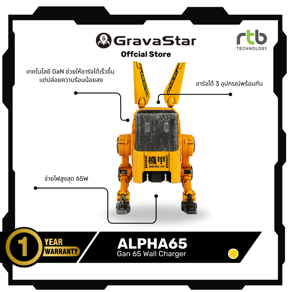 (ประกันศูนย์ไทย1ปี) GravaStar Alpha65 Fast Charger (GaN 65W) หัวชาร์จ 2C 1A 65W