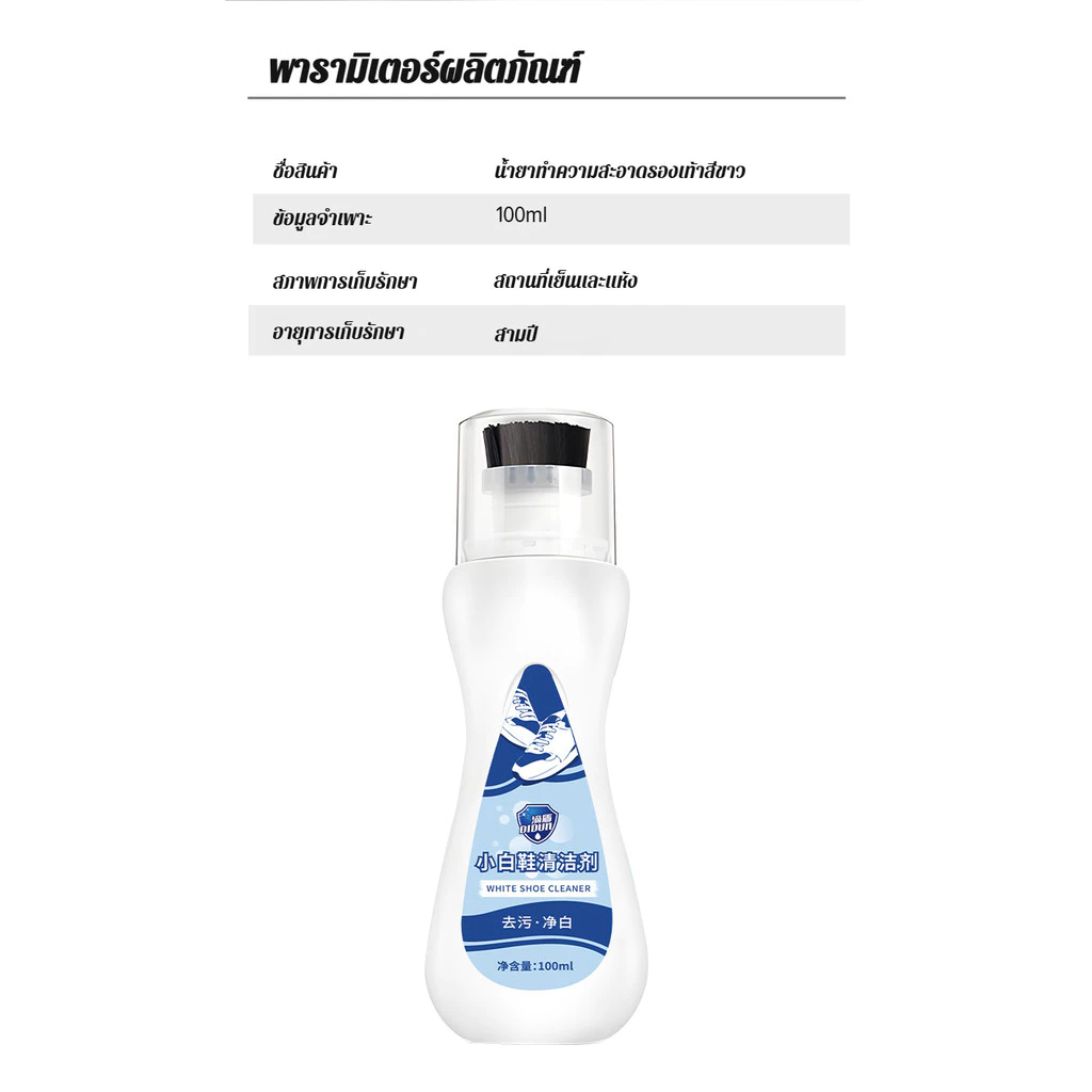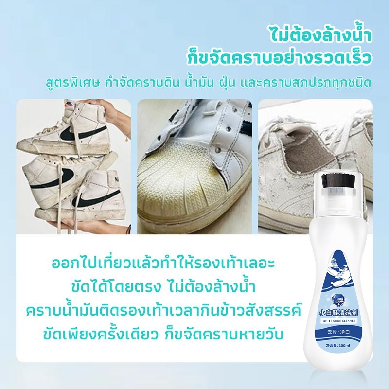 น้ํายาล้างรองเท้า น้ํายาซักแห้ง มีแปรงในตัว โฟมทําความสะอาด ขจัดคราบง่าย ไม่ต้องล้างน้ํา