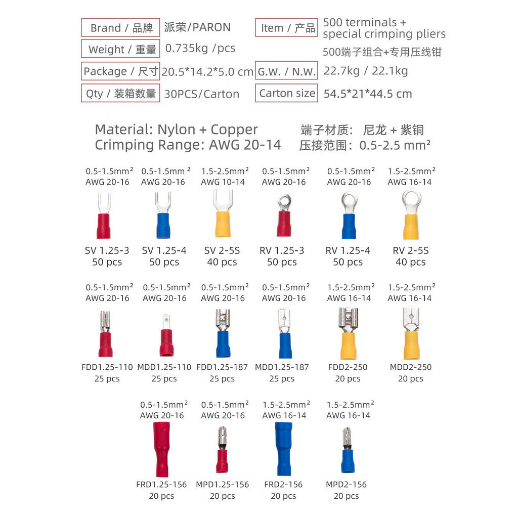 Parong Ratchet Terminal Crimping Pliers Set Multi-Specification Multi-Function Cold Pressing T