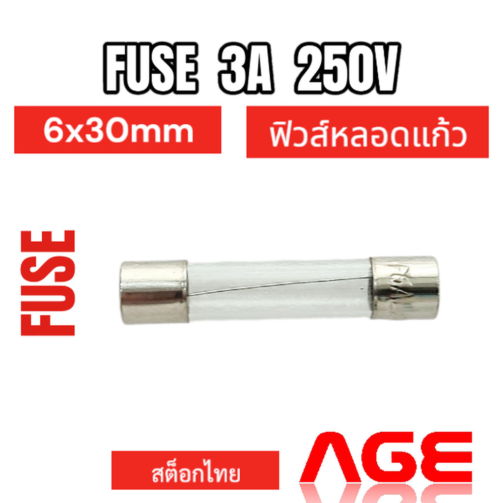 FUSE 3A 250V 6X30mm ฟิวส์หลอดแก้ว