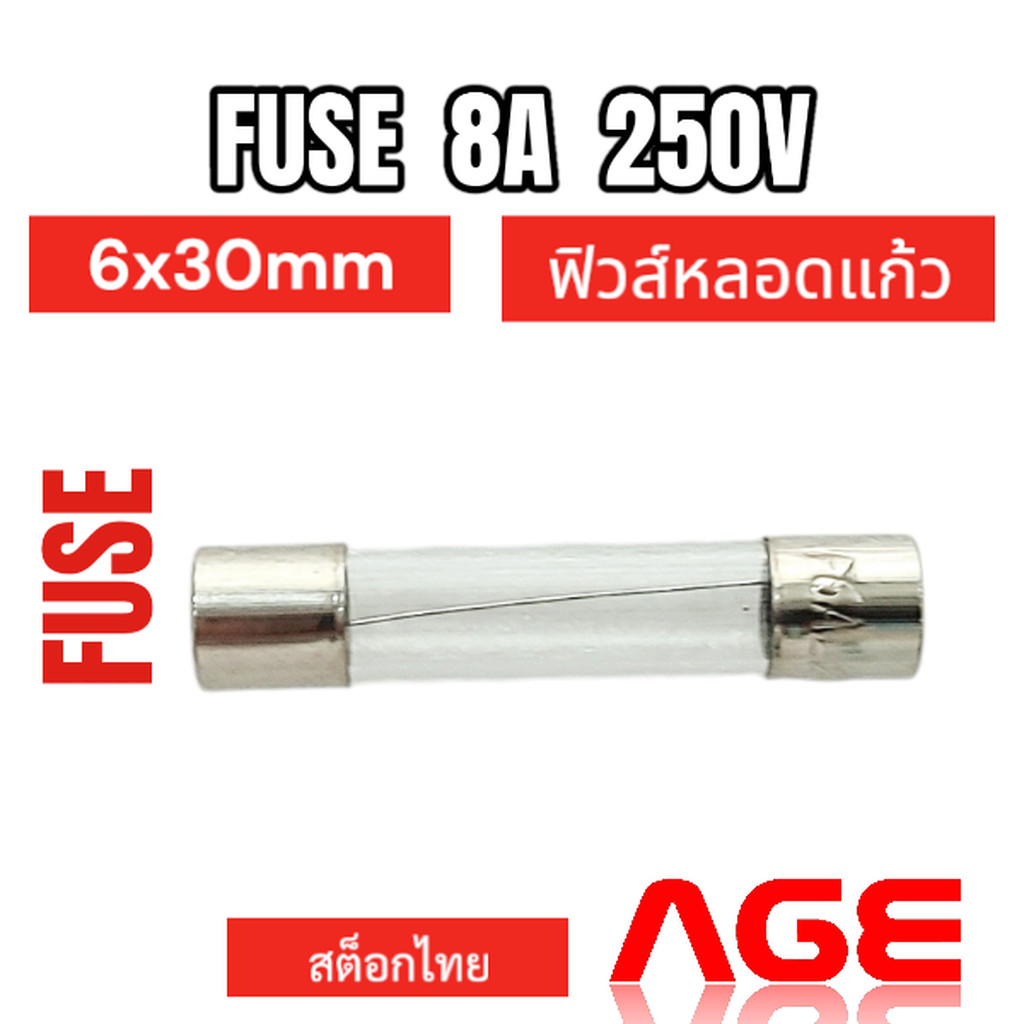 FUSE 8A 250V 6X30mm ฟิวส์หลอดแก้ว