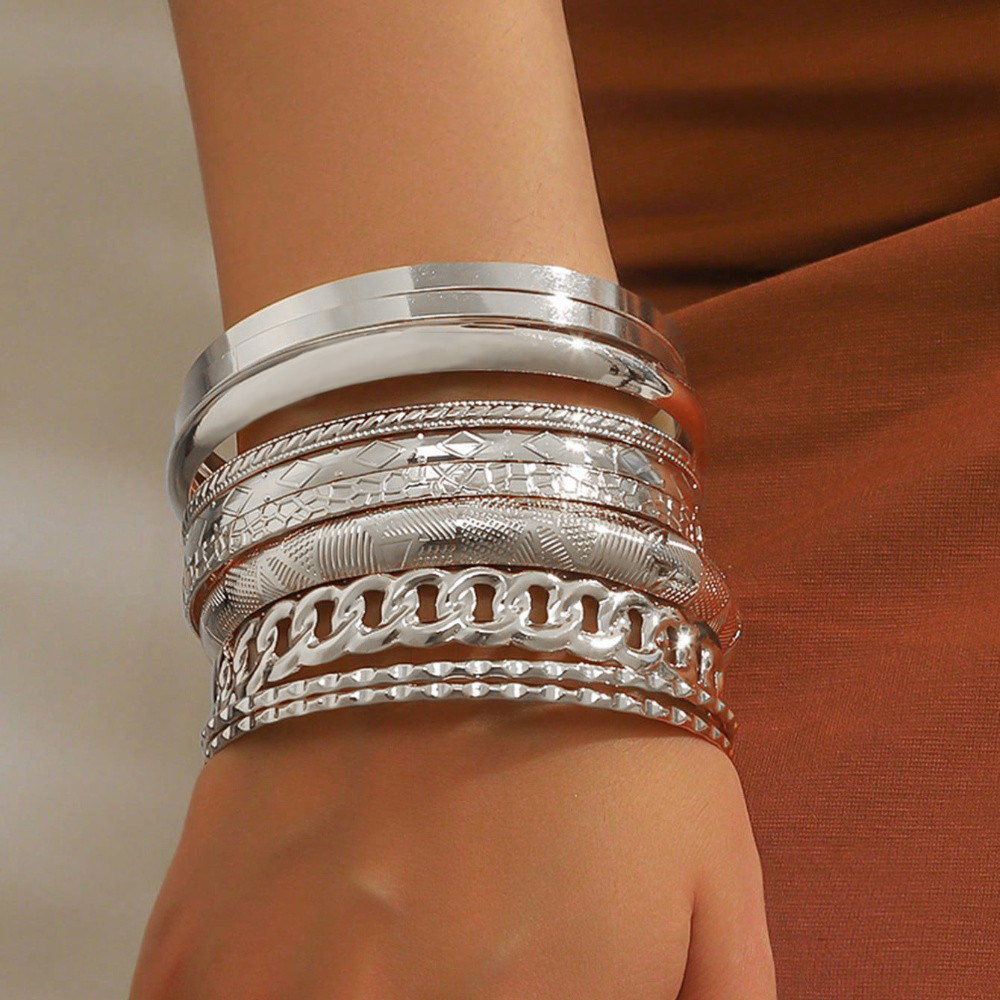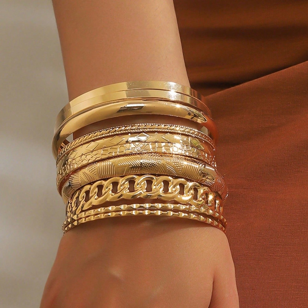 10ชิ้น/เซ็ตวินเทจสร้อยข้อมือชุดสําหรับผู้หญิงผู้ชายบิดกําไลชุดซิลเวอร์โกลด์สีเครื่องประดับงบ สตรีทแวร์ ชาวเยอรมัน ของขวัญ