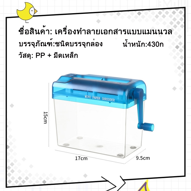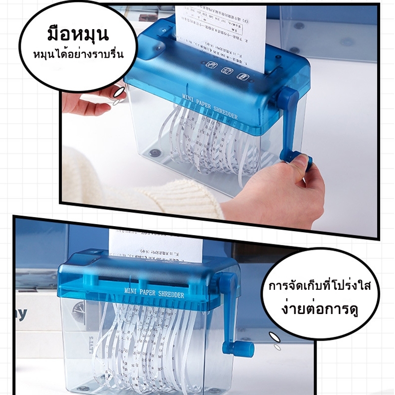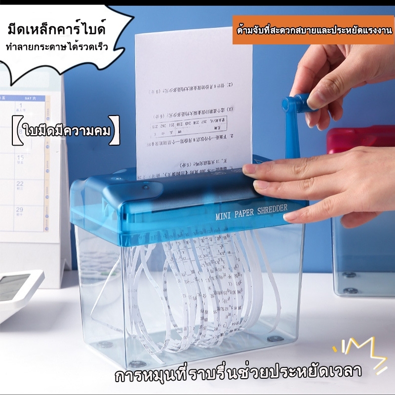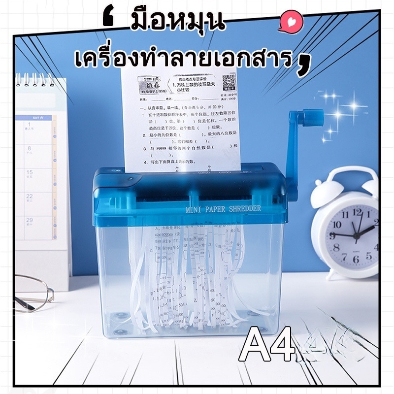 เครื่องย่อยกระดาษ เอกสาร เครื่องทำลายเอกสารมินิ เครื่องทำลายกระดาษ มือหมุน ขนาด มีสีให้เลือก(กระดาษ A4 ต้องพับเก็บ)