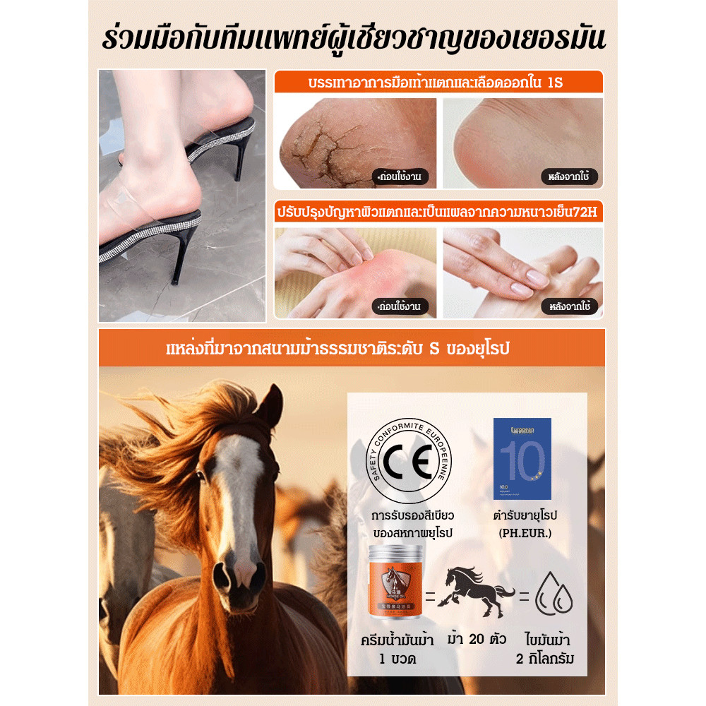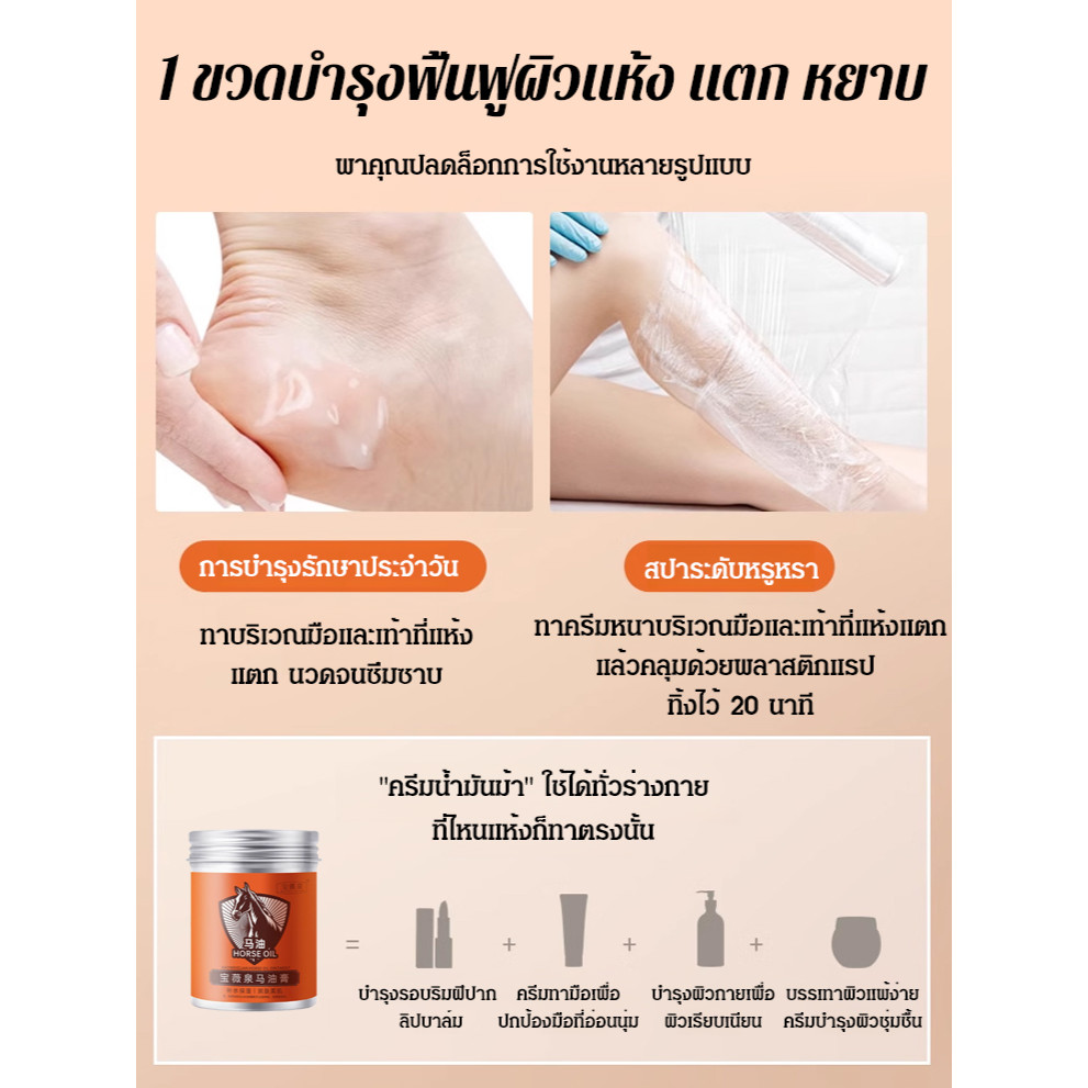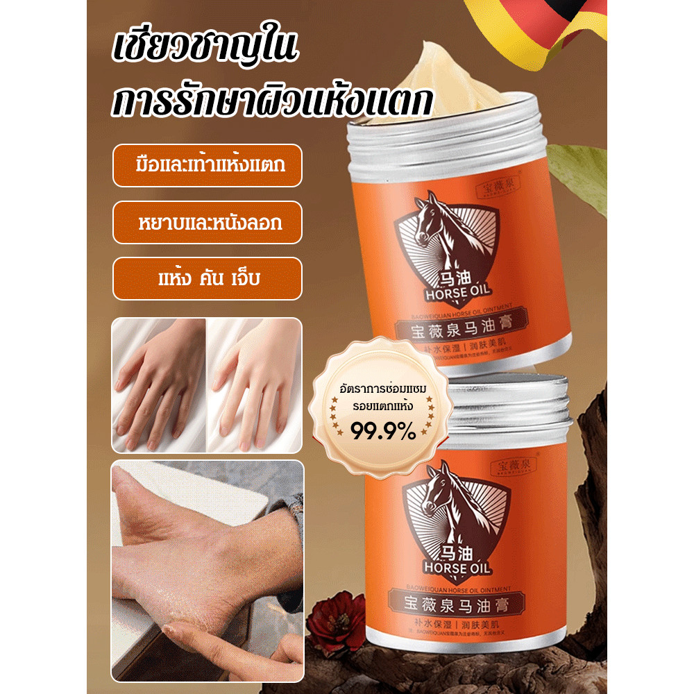 【ขายดี】ครีมทามือน้ำมันม้า ทามือแห้งแตกครีมบำรุงมือ ครีมทามือตราม้า 100g Horse Oil hand cream