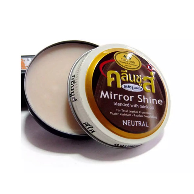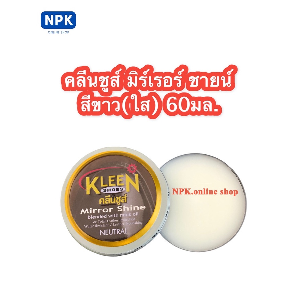 คลีนชูส์ มิร์เรอร์ ชายน์ ครีมขัดเงารองเท้าสีขาว(ใส) ขนาด60มล.((สูตรเงาแบบกระจก))