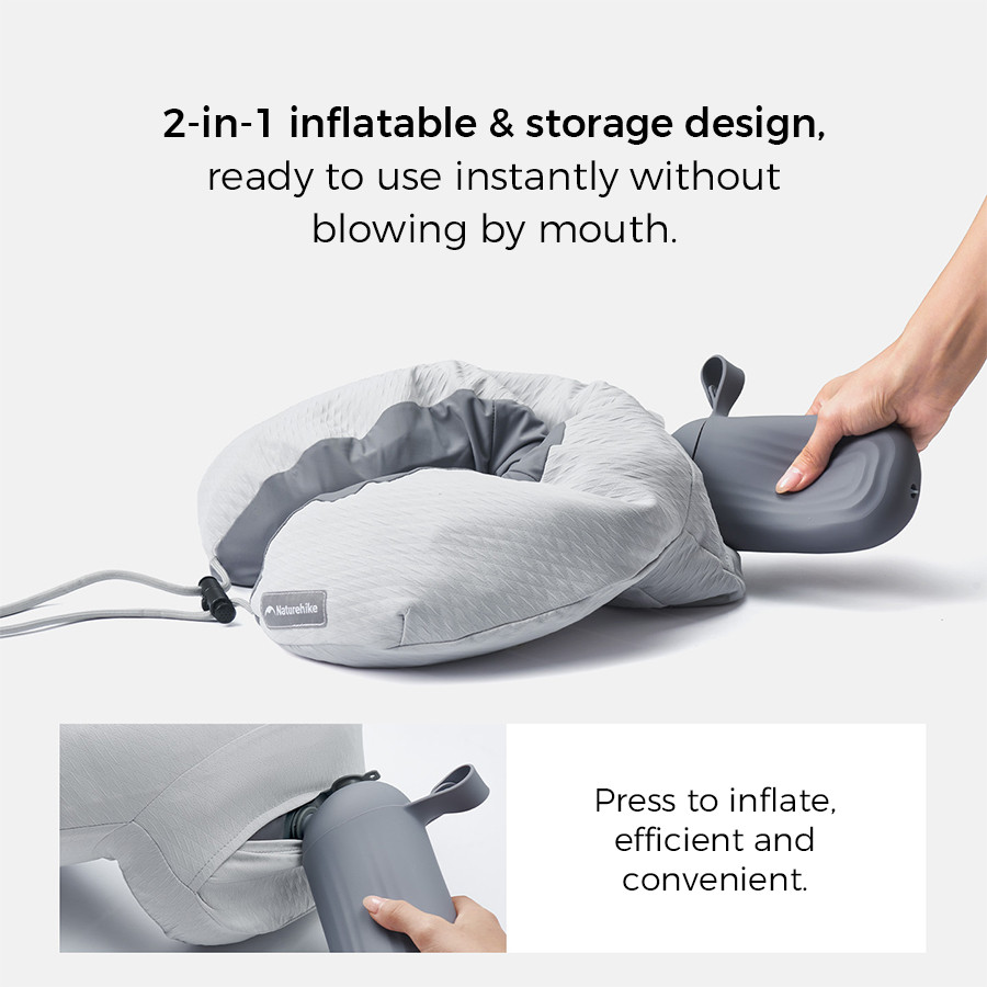หมอนรองคอแบบเป่าลม Naturehike Feather U+ สําหรับการเดินทางและสํานักงาน หมอนลมแบบพกพาพร้อมรองรับแบบปรับได้